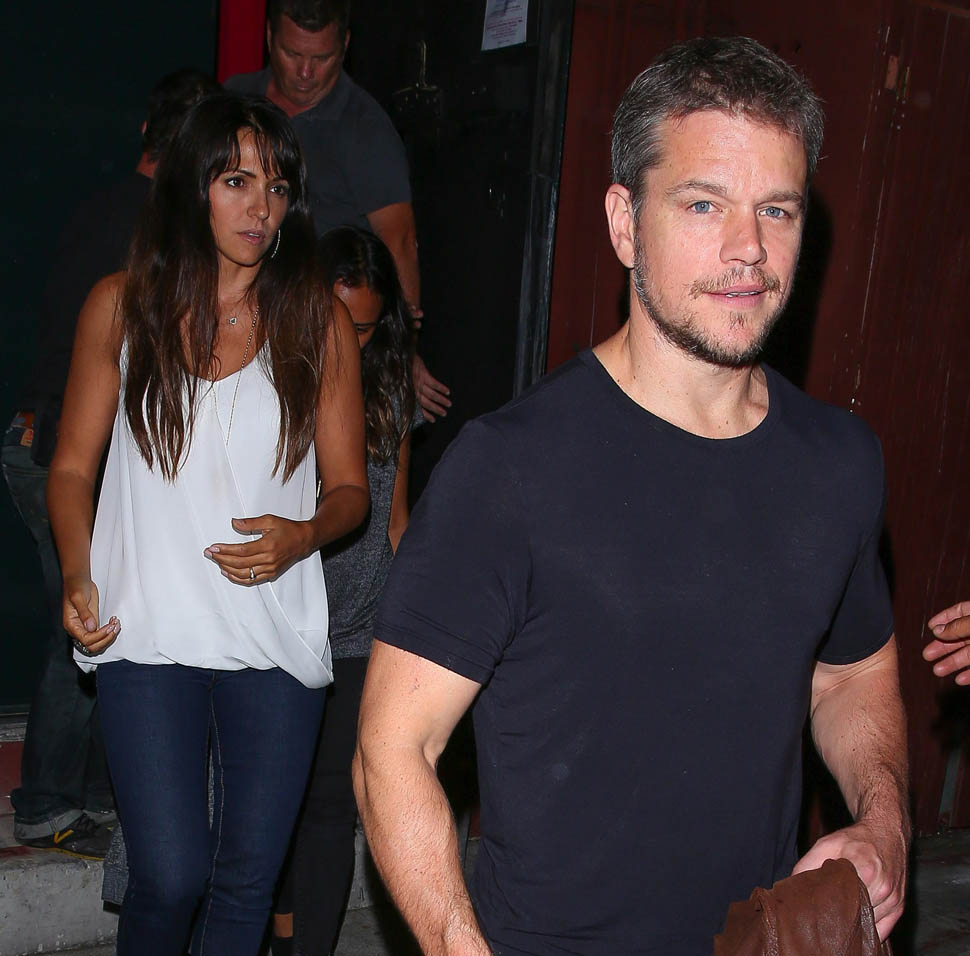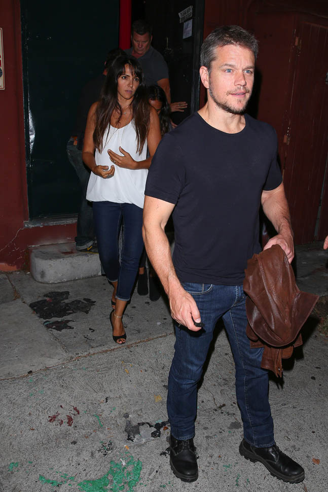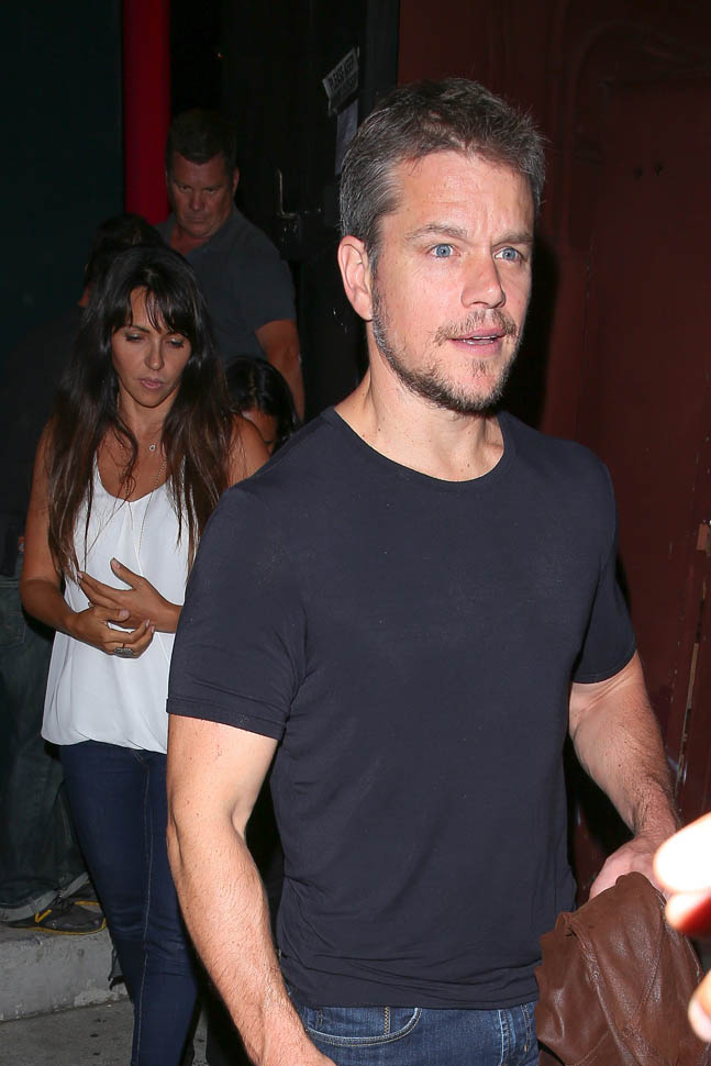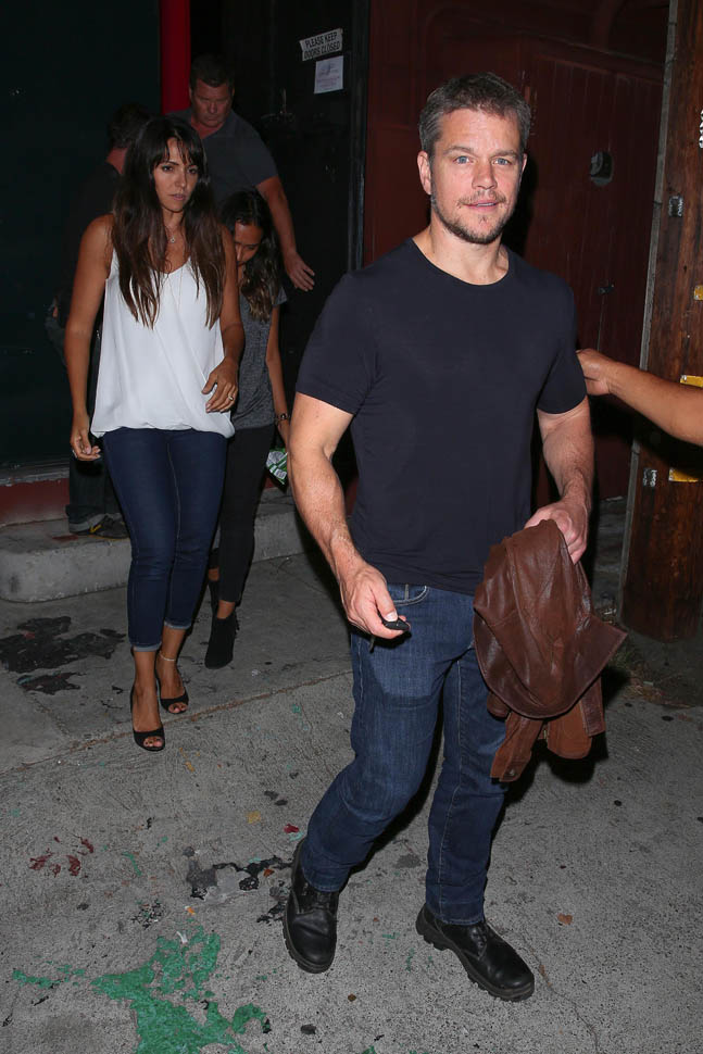 Matt Damon. Always the foil to Ben Affleck’s f-ckery. When Ben’s standing next to Matt, his Q score instantly improves. Matt was papped yesterday with his wife, Luciana. I asked earlier about what the conversations involving Ben Affleck sound like whenever one of his friends has plans with him. How does it work when Ben and Matt go out?