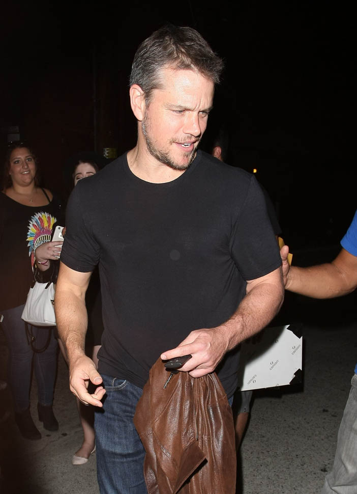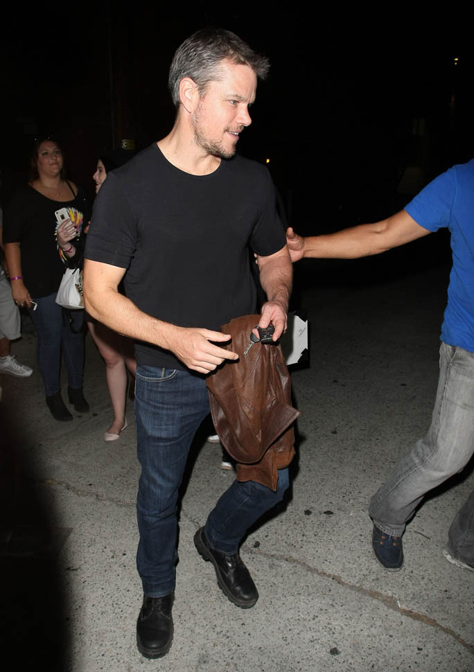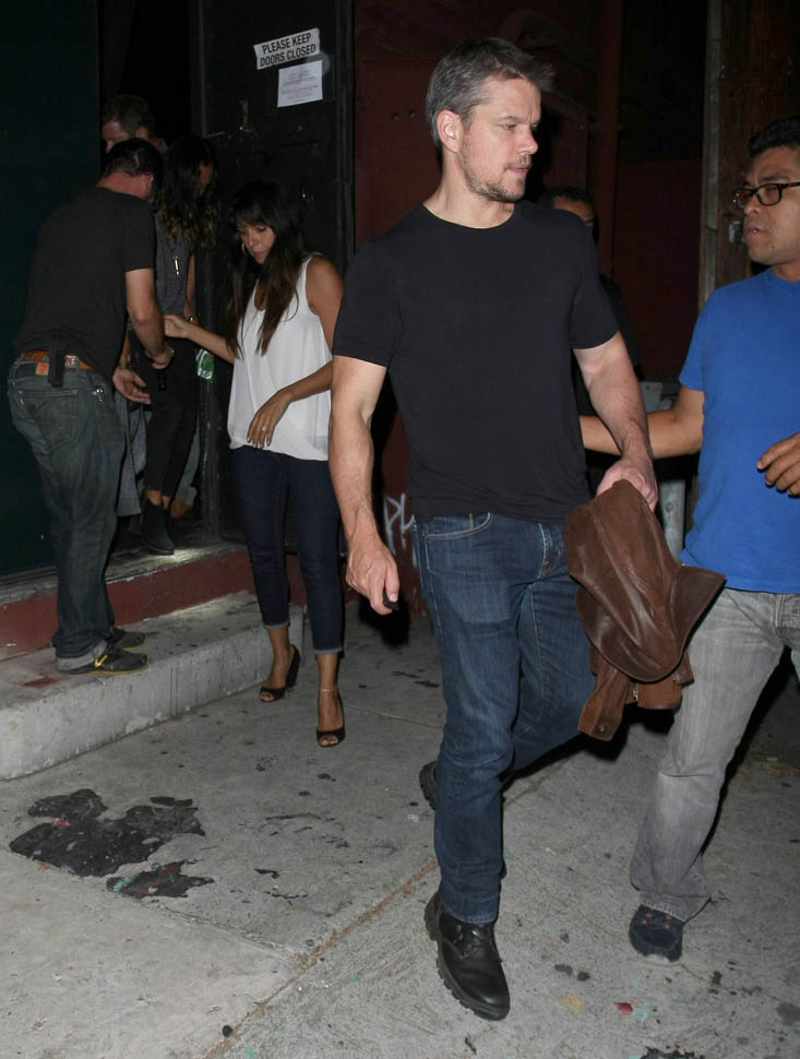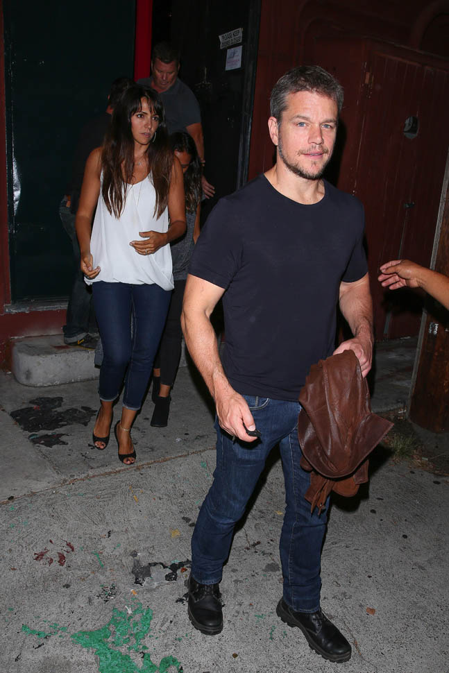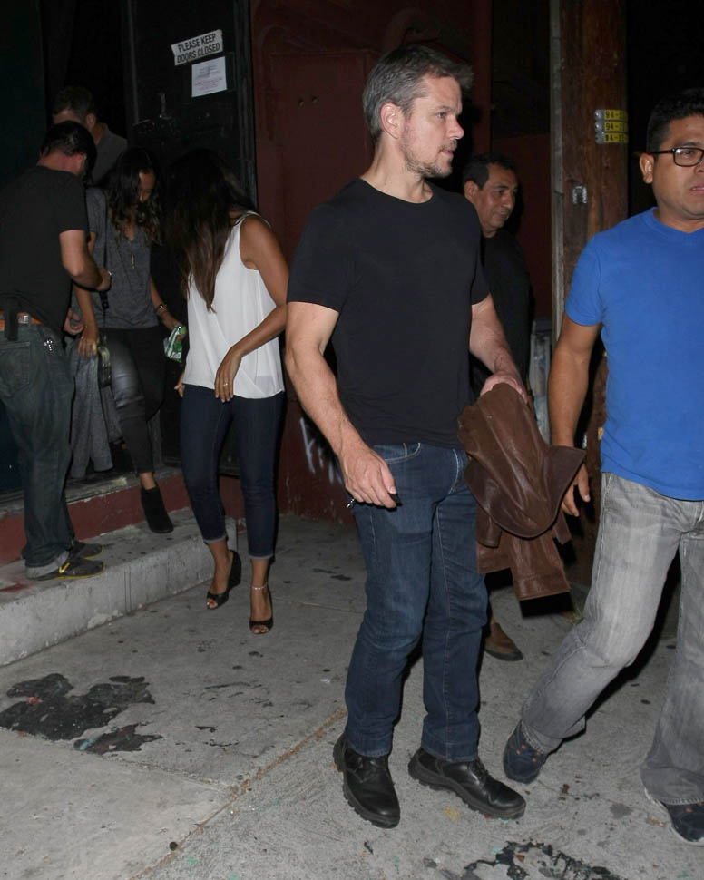 Matt Damon. Always the foil to Ben Affleck’s f-ckery. When Ben’s standing next to Matt, his Q score instantly improves. Matt was papped yesterday with his wife, Luciana. I asked earlier about what the conversations involving Ben Affleck sound like whenever one of his friends has plans with him. How does it work when Ben and Matt go out?