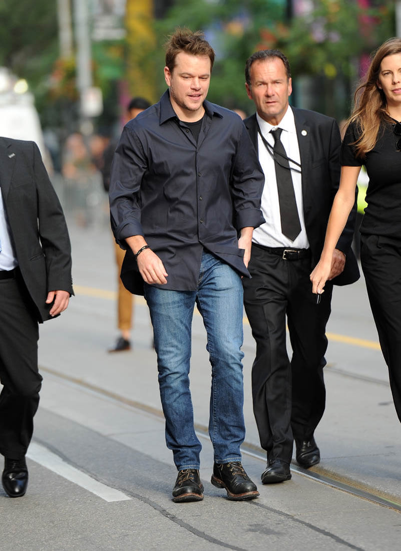 Matt Damon was at TIFF yesterday as a producer on Manchester By The Sea, written and directed by Kenneth Lonergan. Matt and Kenneth have worked together before – on a film called Margaret, critically acclaimed, but complicated behind the scenes by financial and editorial disputes. Click here for more background on the Margaret situation. Matt was initially supposed to star in Manchester but schedules got in the way. He signed on as a producer instead, and because of what happened with Margaret, he’s not f-cking around with his support. He came to Toronto to make sure his influence can be felt, to leverage his star power as much as possible to keep Manchester By The Sea in conversation. The reviews have been so good that