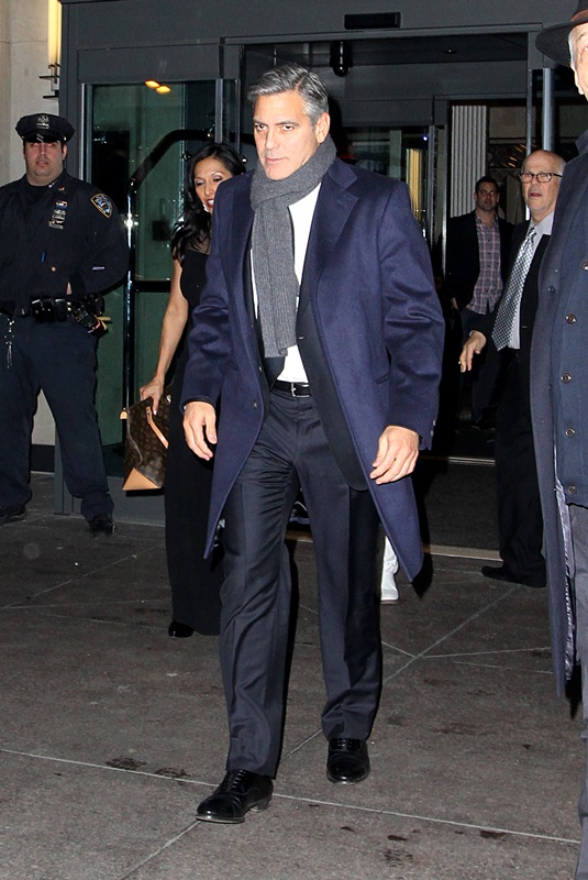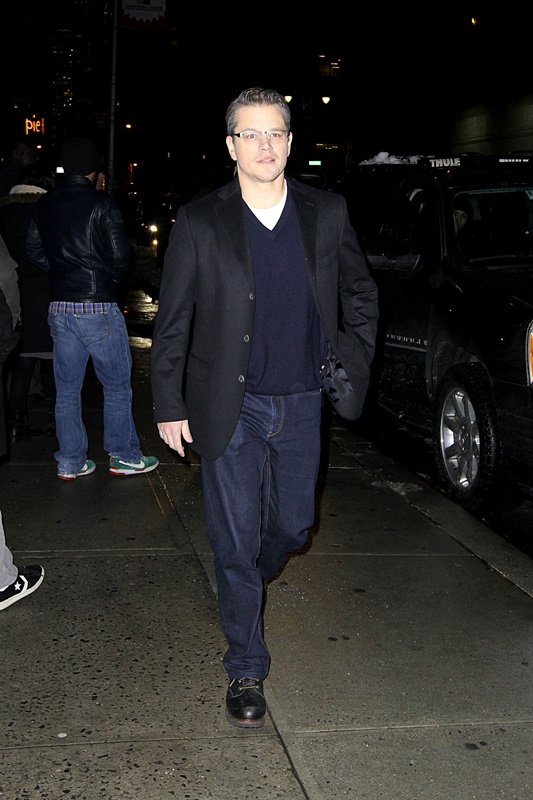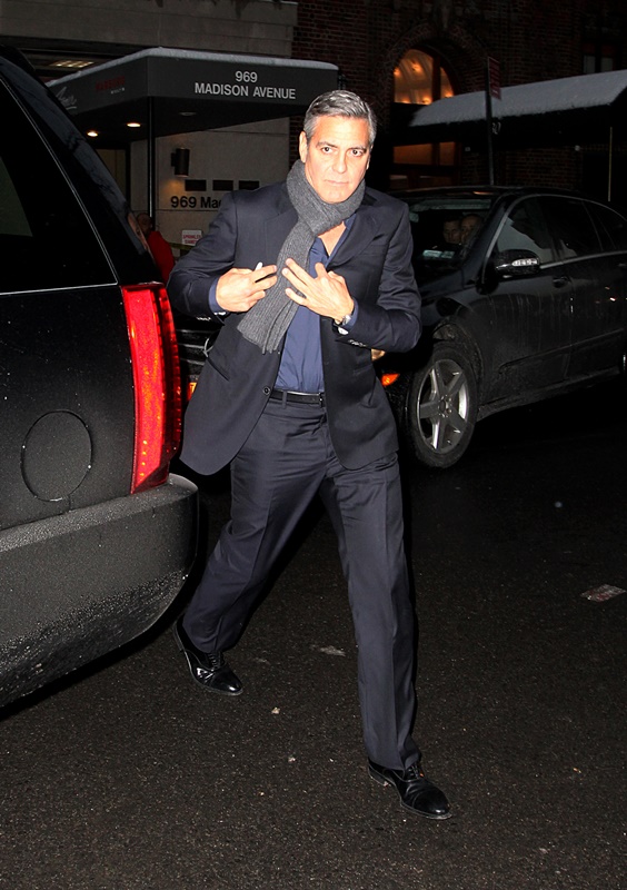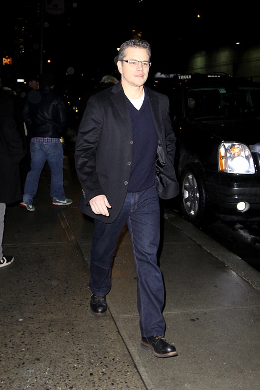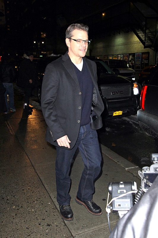 Anyway, here are George and Matt out in New York yesterday continuing to promote The Monuments Men which opens today. Jacek asked me last night what it was about. I described it as the true story of Oceans Eleven only Terry Benedict is Hitler.