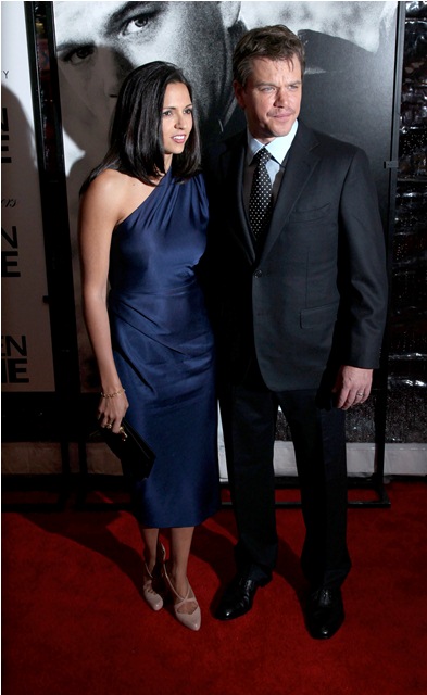This is Matt Damon and his wife Luciana at the premiere of Green Zone in NYC last night. Green Zone opens March 12th based on the book Imperial Life in the Emerald City by Rajiv Chandrasekaran. A fascinating read. I picked it up after Chandrasekaran appeared on The Daily Show with Jon Stewart to promote it. Finished in a week. Extensively researched, subversively funny, well written, and disturbing, I promise it’s well worth your time. You come out the other side perhaps with a more balanced appreciation of war management.