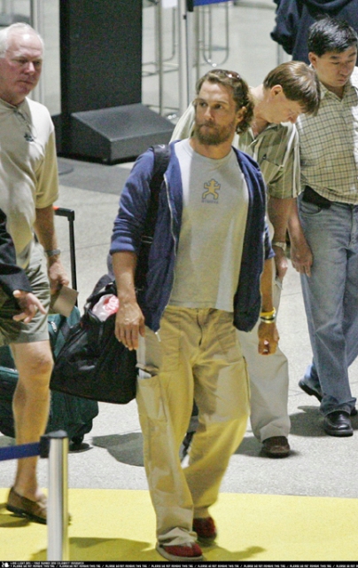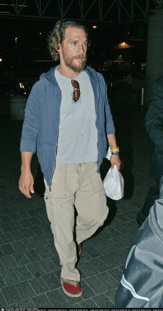 The reigning People Magazine Sexiest Man Alive. There HAS to be a curse. If there was no curse, how can you explain his sharp summer decline? Looking bad is one thing. Desperately craving attention, oozing sleaze, oily and pervy... Matthew McConaughey is totally revolting. Here is at LAX the other day, compensating for the recession with that nasty ass overgrown beard. First Jude, now Matthew...how many victims constitutes a curse?