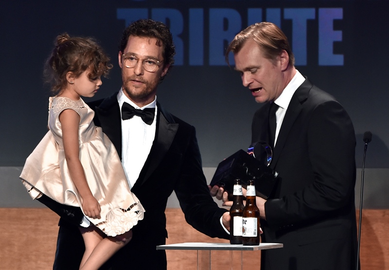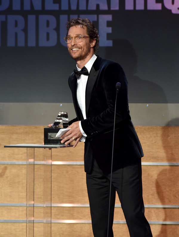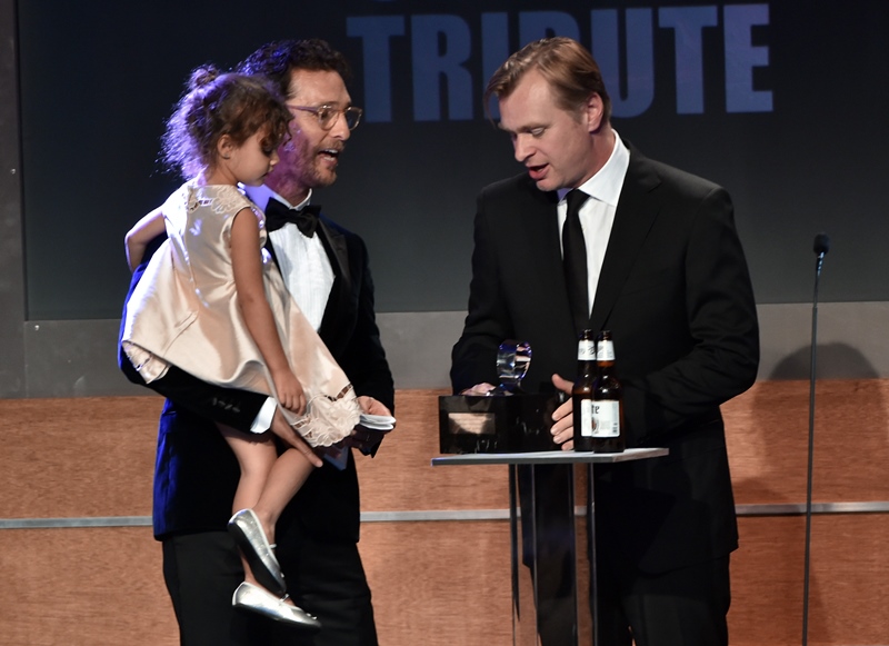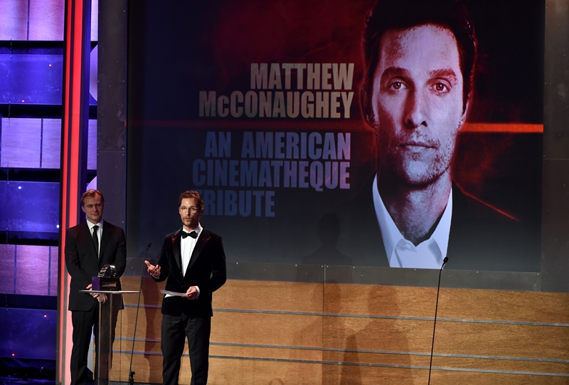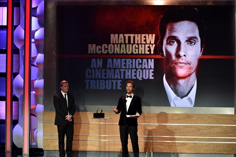 Matthew McConaughey received the American Cinematheque Award last night in Hollywood and it was a strong turnout. The timing is great too. Not only because he’s winning everything (but the Emmy), but also because Interstellar comes out soon, one of most highly anticipated films of the year. Of over a year. Ever since Christopher Nolan decided he was making it.