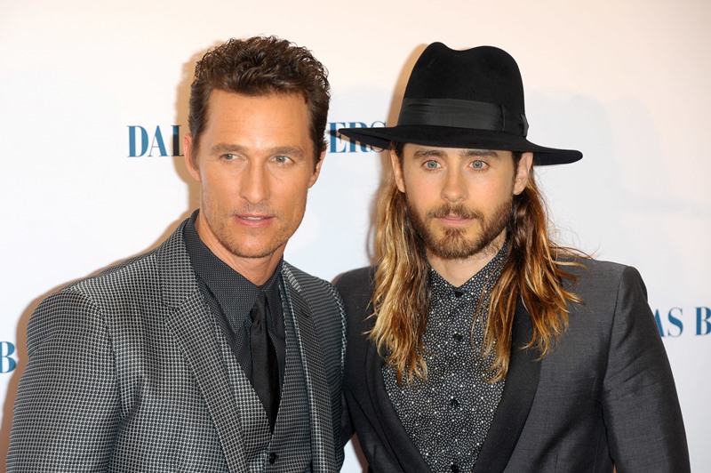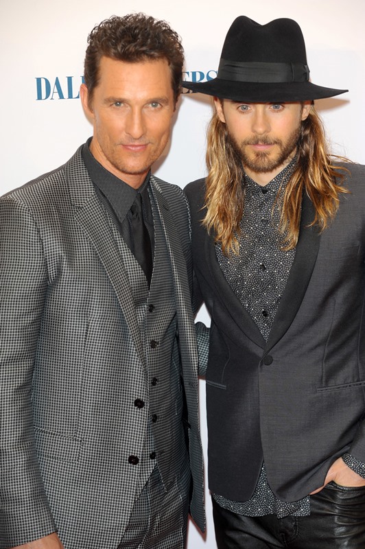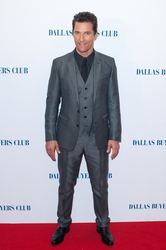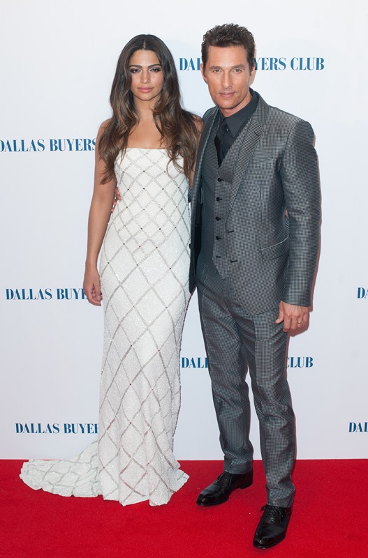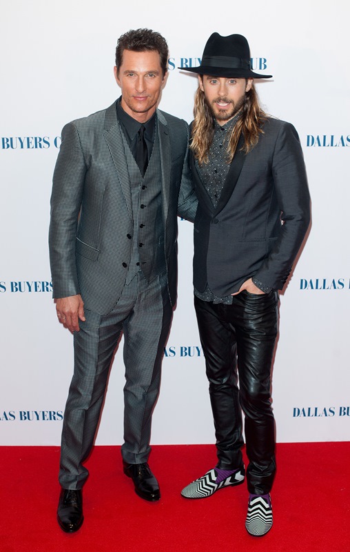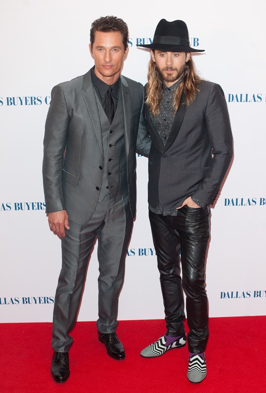 Matthew McConaughey and Jared Leto were in London last night for the UK premiere of Dallas Buyers Club. As you know, Jared has been totally unchallenged in the Best Supporting Actor category so far and is predicted to walk away with it, no doubt. As you’ve seen, Matthew has played a flawless campaign. He and Camila Alves show up and they deliver and they want it just enough without seeming too desperate and, with 4 weeks to go, he’s built up a solid lead; Leonardo DiCaprio has a lot of ground to cover.
