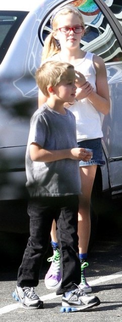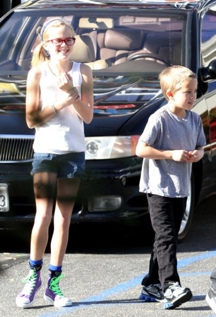 First – since Reese Witherspoon was in Europe the last few days promoting How Do You Know, Phillippe looked after Ava and Deacon. Ava will be 12 in September. This is tripping me out, I can’t imagine how it must trip Reese out. Look at her. She’s, like, a giant person. And what a lovely face.