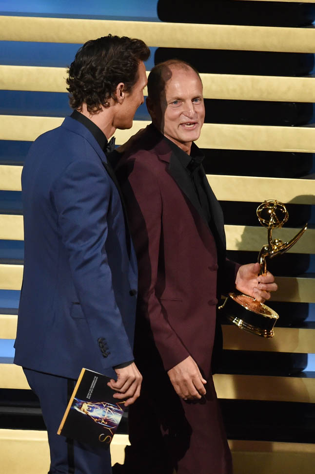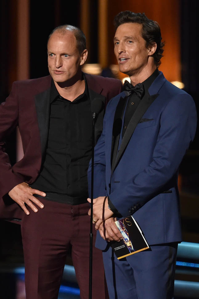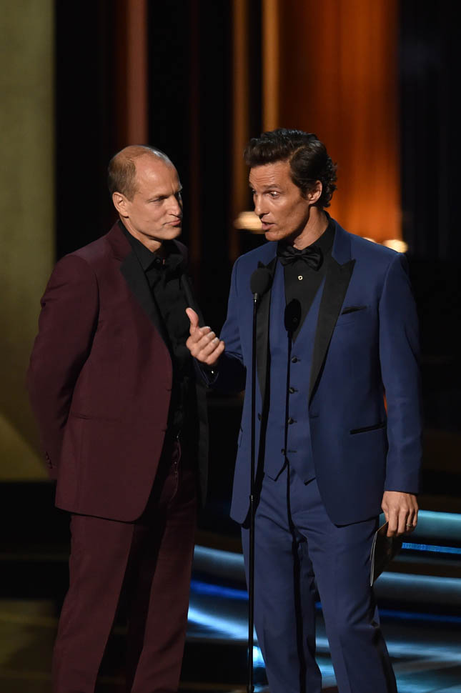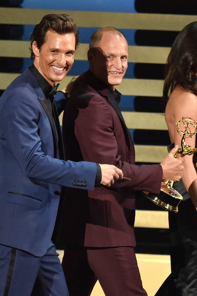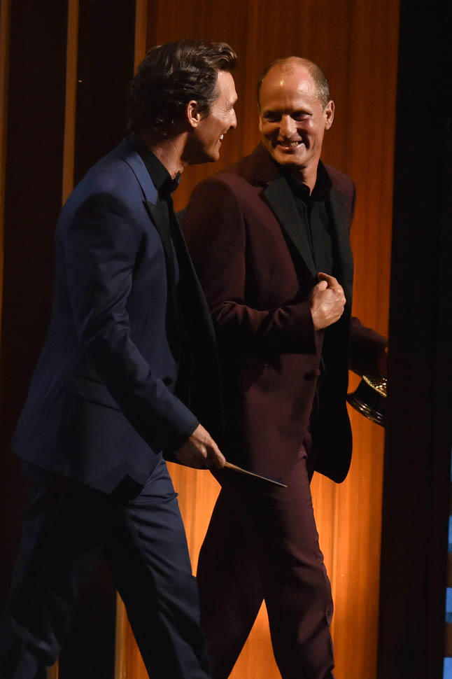 Would that swagger have been there after Heisenberg came and took them both out? Woody was probably never going to win. But Matthew, he’s been winning everything. Even Kimmel, earlier in the night, made mention of the fact that the entire room expected it. And yet Bryan Cranston succeeded where Leonardo DiCaprio couldn’t. You could see there in the slight clench of his jaw, McConaughey wanted it bad. He wanted to make history. He was disappointed when he didn’t. But the television academy denied him…maybe not on the grounds that he’s a movie star, but in True Detective’s definition of itself as a drama series instead of miniseries.