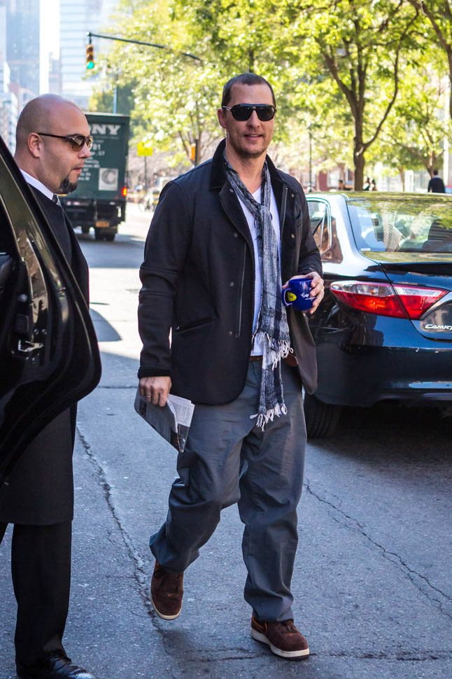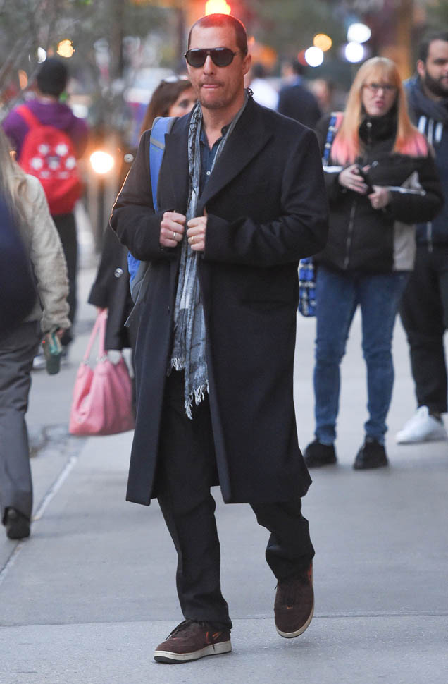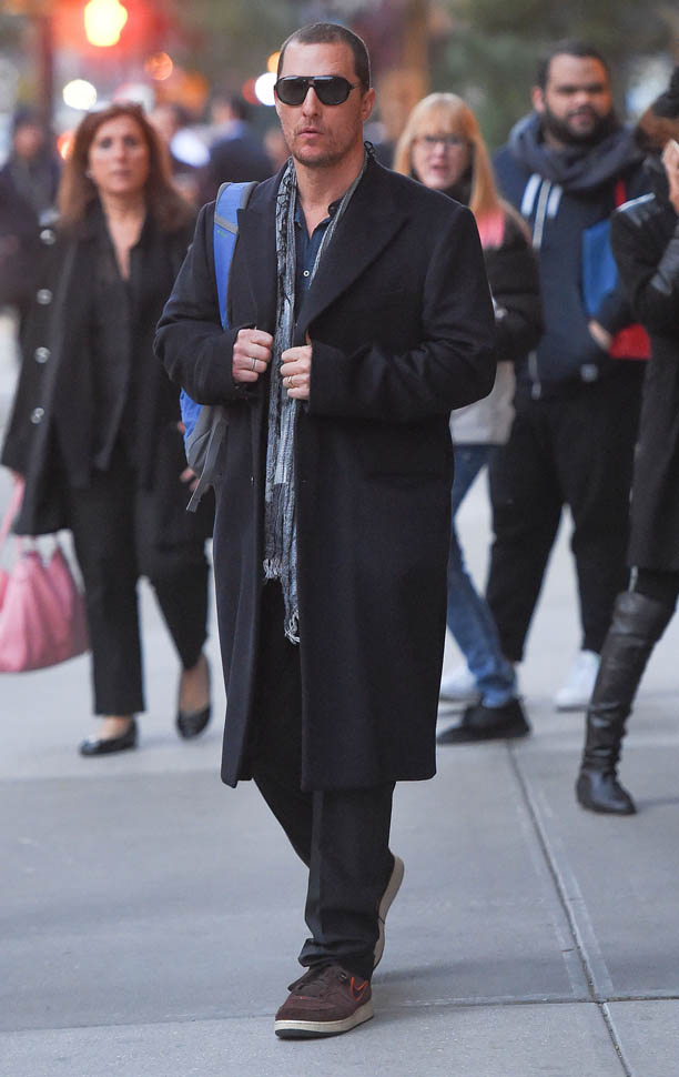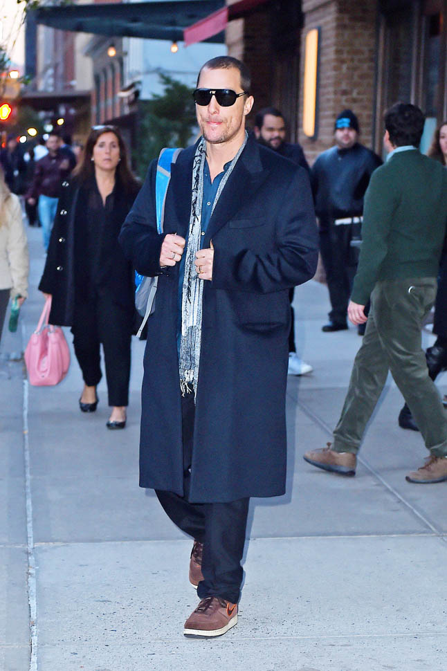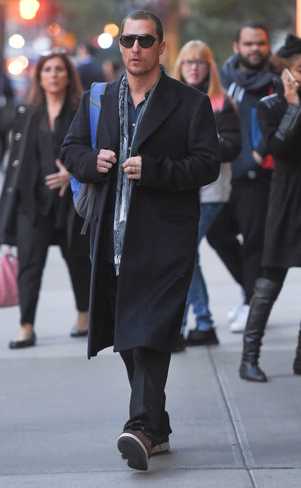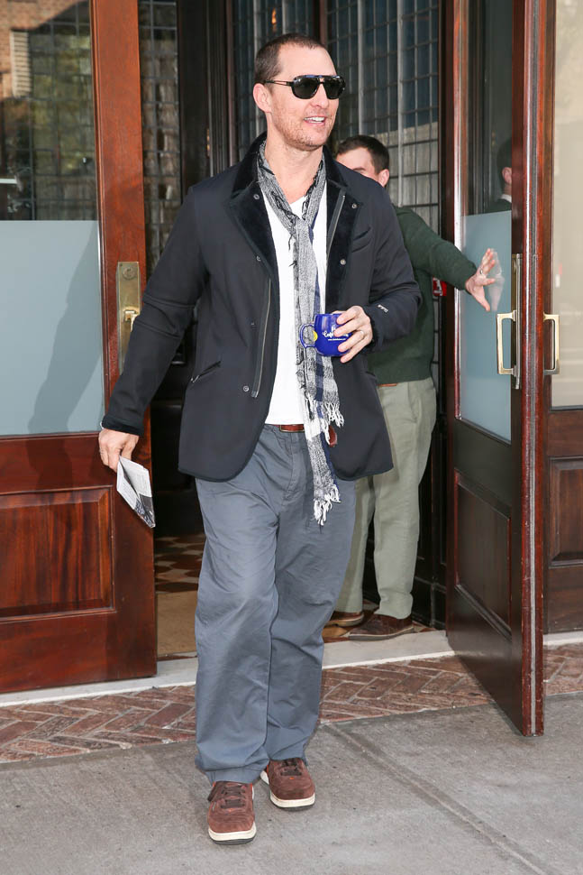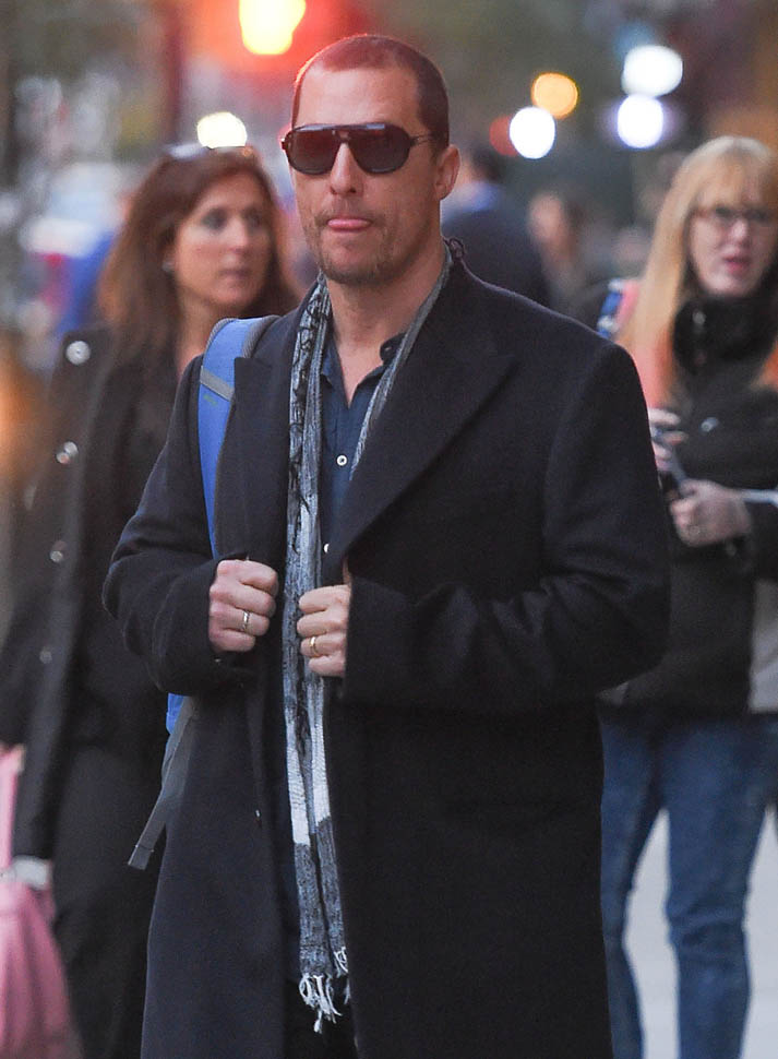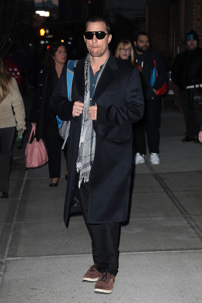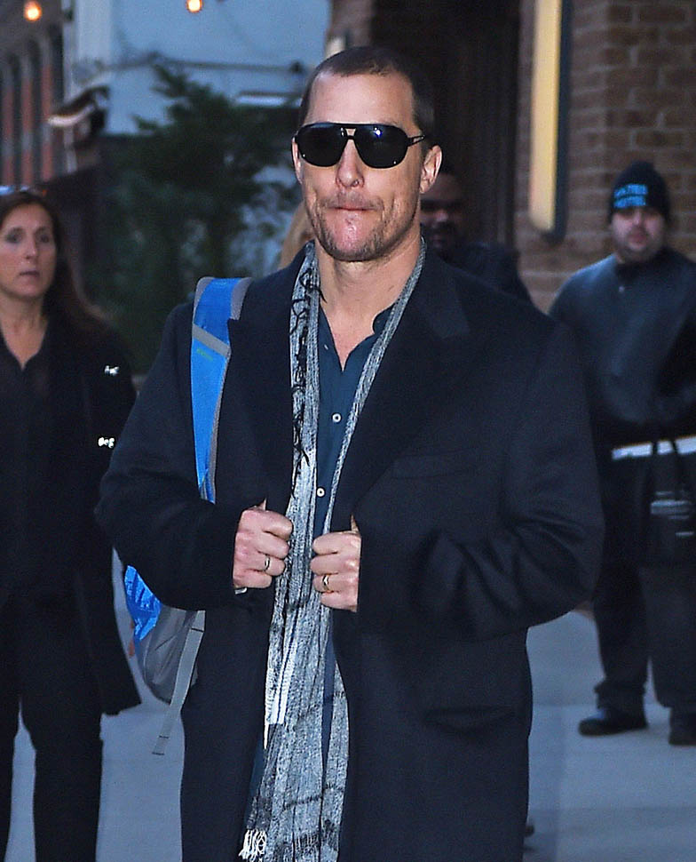 Matthew McConaughey is in New York this week rehearsing for Saturday Night Live. He’s hosting this weekend with musical guest Adele. It’ll be his second time. The first time was in 2003 before he decided to remodel his career. Before he became Matthew McConaughey, Best Actor Oscar winner which people are still getting used to, as evidenced by John Oliver’s joke on Last Week Tonight a couple of episodes ago when he was talking about What The F-ck reality in 2015 and Matthew’s name came up. Also, Matthew hasn’t been on the show since Jim Carrey did that great parody of his Lincoln commercials.