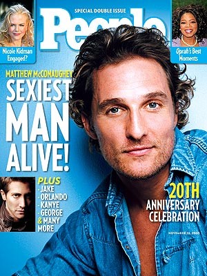 The last time I posted about him he was sacrificing his sexy on the set of Gold. Click here for a refresher. This marks the 10 year anniversary of Matthew being named PEOPLE’s Sexiest Man Alive. Since that’s the theme for the day, let’s revisit his cover. I correctly predicted it that year, back when, you know, the SMA brand still held some cachet.
