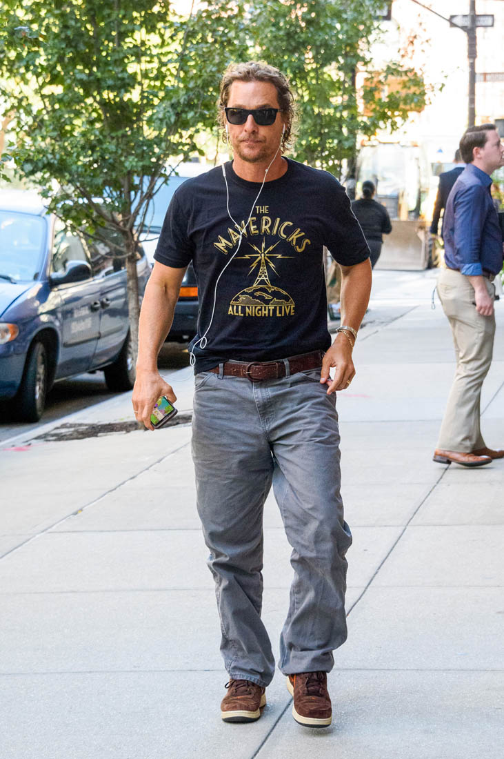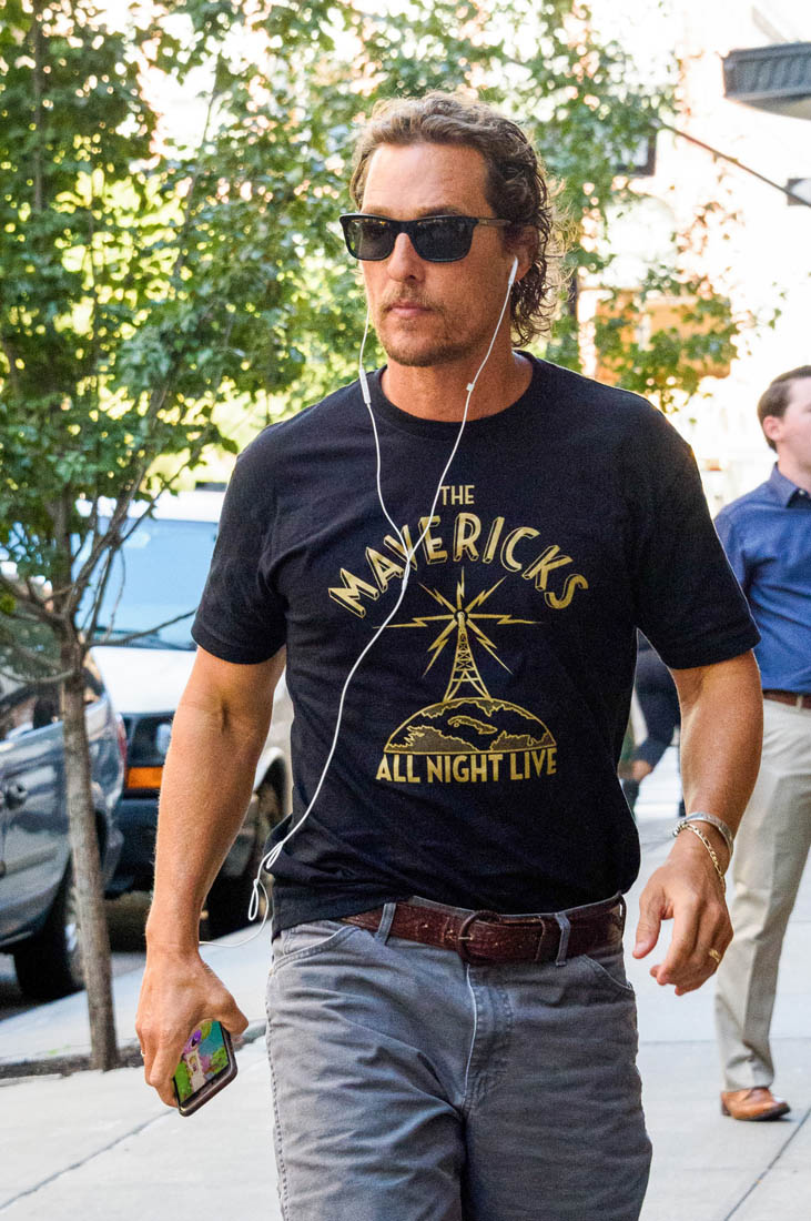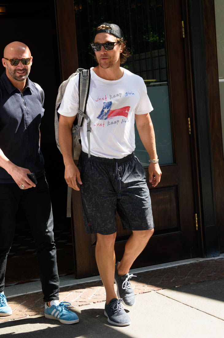 Here is Matthew McConaughey out and about in New York, where he was in town to speak on behalf of the just keep livin Foundation (that punctuation drives me nuts). He looks good, and not at all like his movie bombed. We’re just a month removed from The Dark Tower tanking, and McConaughey isn’t wearing it. We always ask who has to wear a movie’s failure, but in the case of The Dark Tower, I don’t think anyone is. Because the whole summer was so bad, Sony can just blame Rotten Tomatoes and/or the audience, and move on. (There is still a TV show in the works.) So Idris Elba and Matthew will both walk away unscathed, and McConaughey already has his next movie on the horizon.