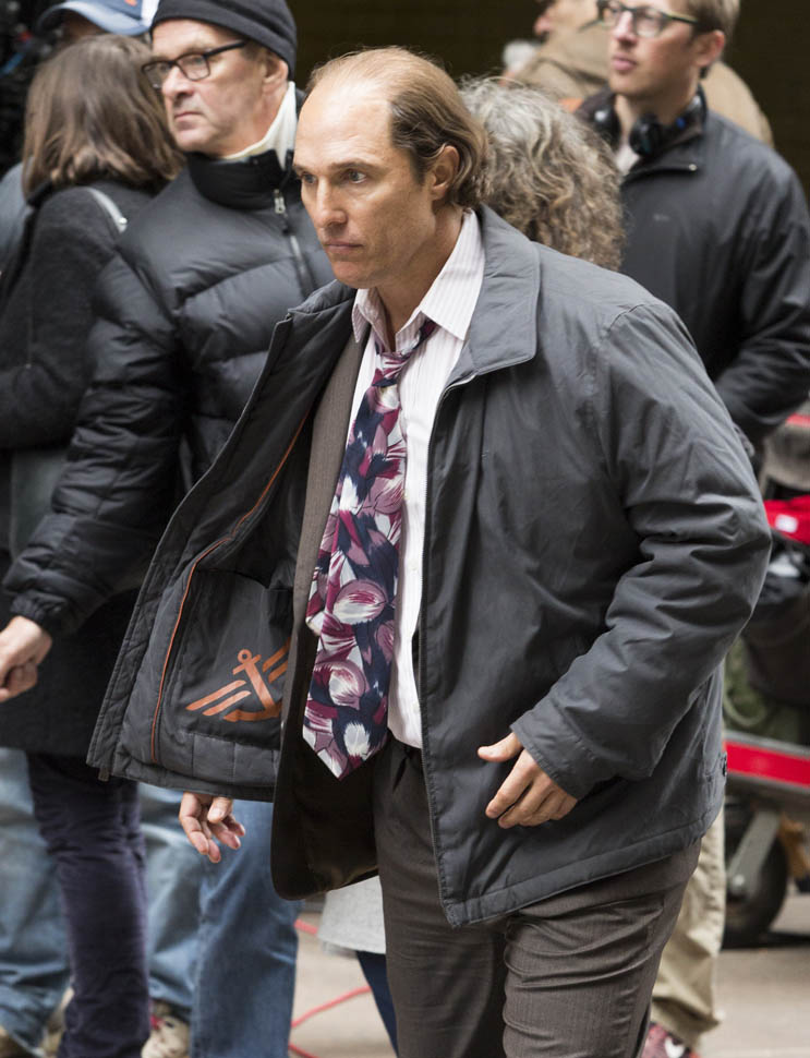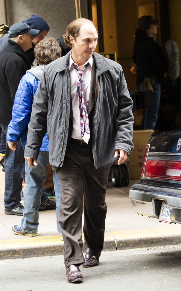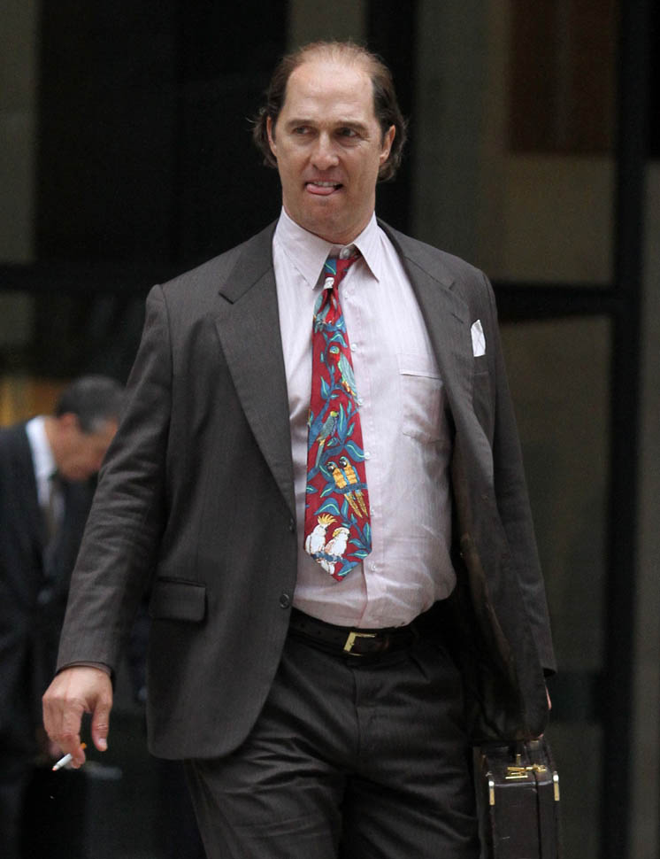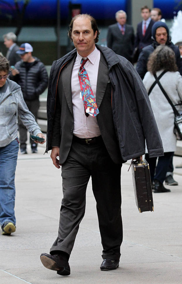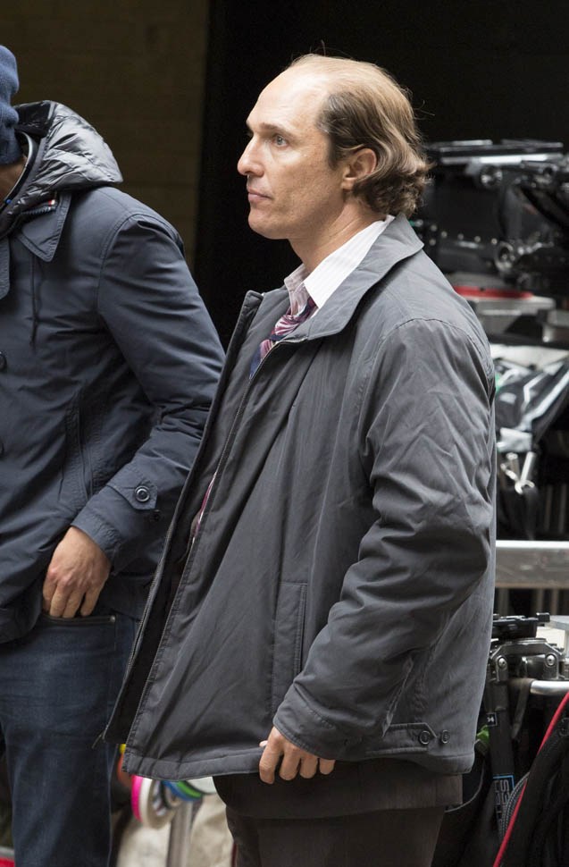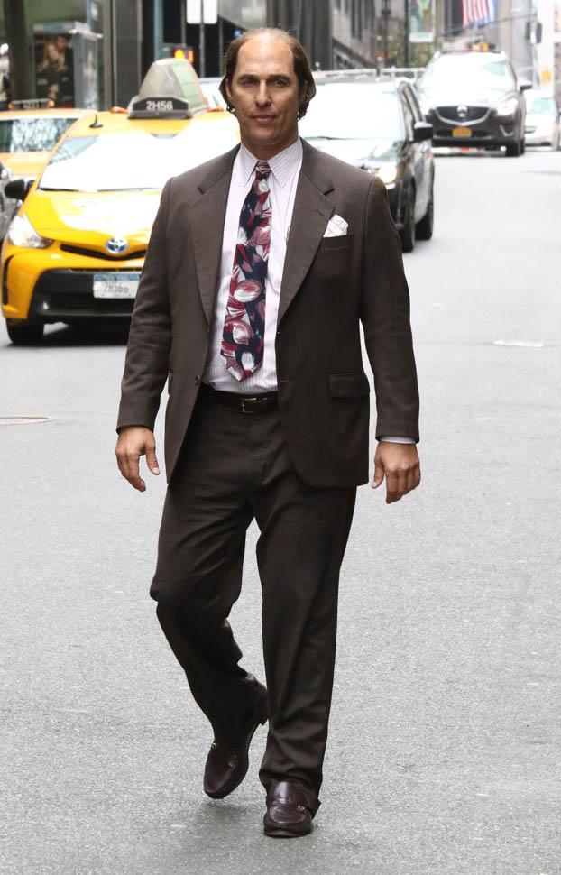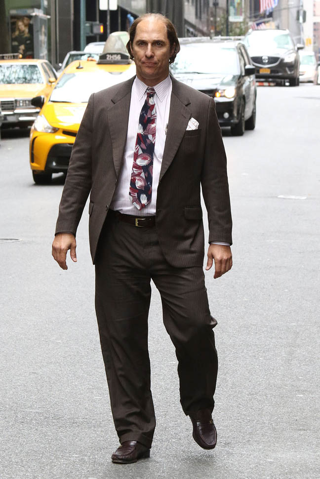 Matthew McConaughey was in New York this weekend shooting Gold. They’ve been working on the film since July and are expected to wrap soon. Matthew plays Kenny Wells, always looking for his big break, and ends up partnering with Edgar Ramirez on a gold hunt in Indonesia. They’re hoping to release it next year. And maybe appeal to the old ass Oscar voter who can relate to Matthew’s glowing pate?