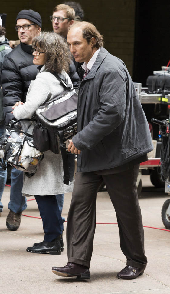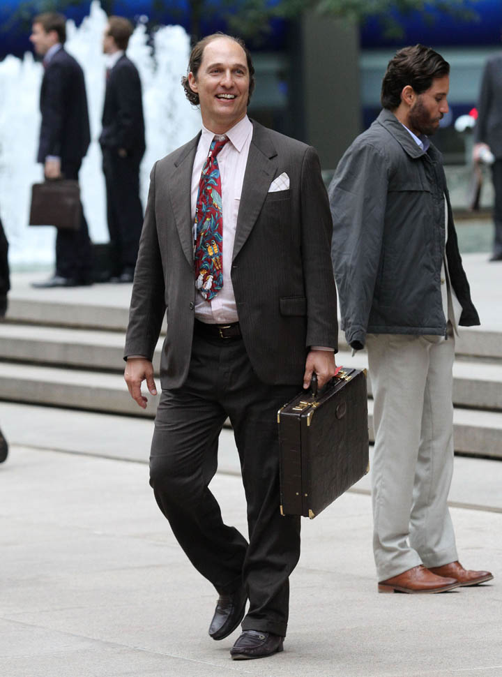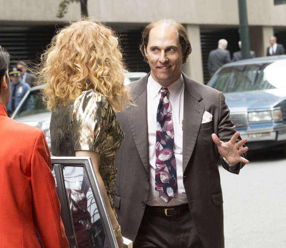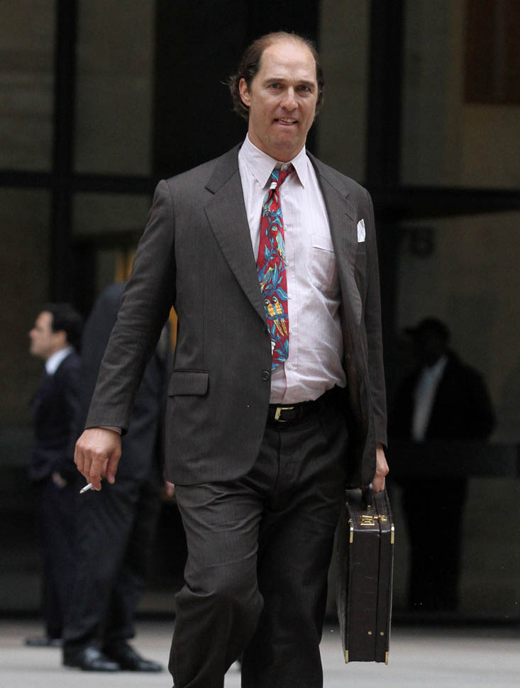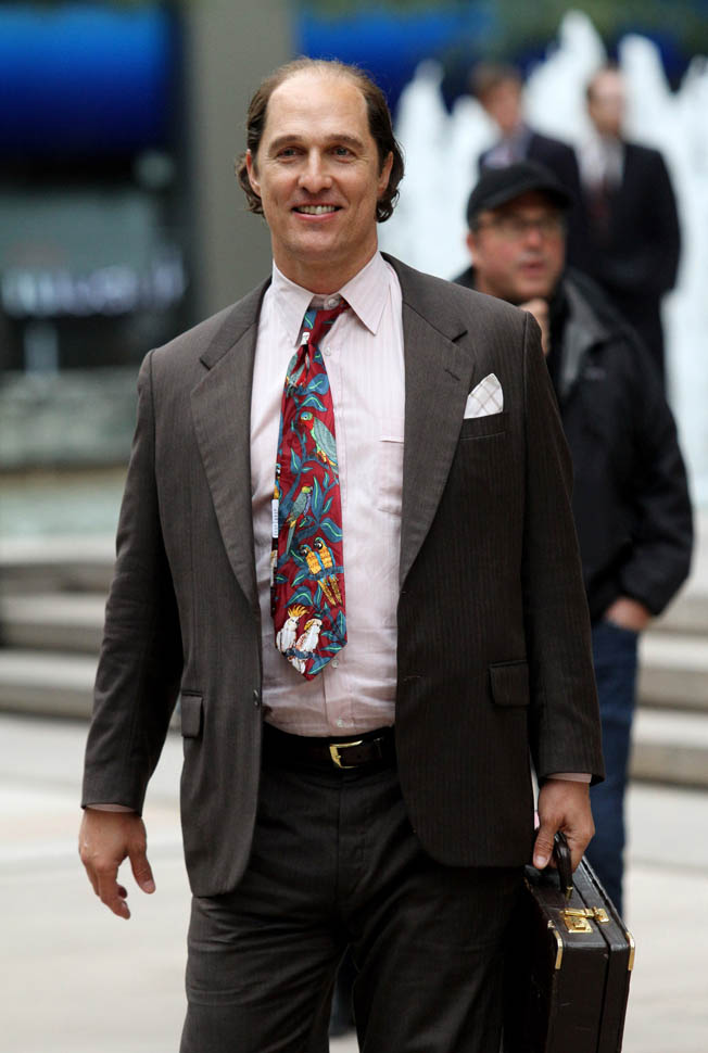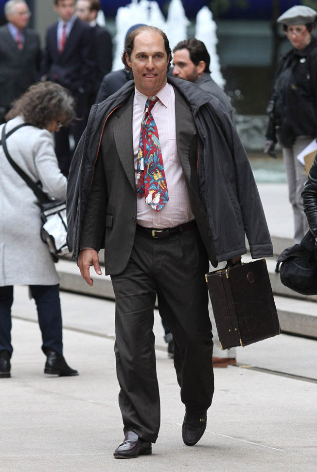 Matthew McConaughey was in New York this weekend shooting Gold. They’ve been working on the film since July and are expected to wrap soon. Matthew plays Kenny Wells, always looking for his big break, and ends up partnering with Edgar Ramirez on a gold hunt in Indonesia. They’re hoping to release it next year. And maybe appeal to the old ass Oscar voter who can relate to Matthew’s glowing pate?