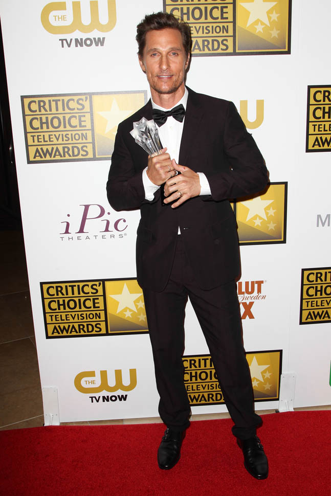 Matthew McConaughey was named Best Actor in a Drama Series over Bryan Cranston last night at the Critics’ Choice TV Awards for his work in True Detective. Because at this point, McConaughey wins everything. He will be nominated for an Emmy. He will very likely win the Emmy and put it alongside his Oscar, a final resounding fist pump for the Year of McConaughey.