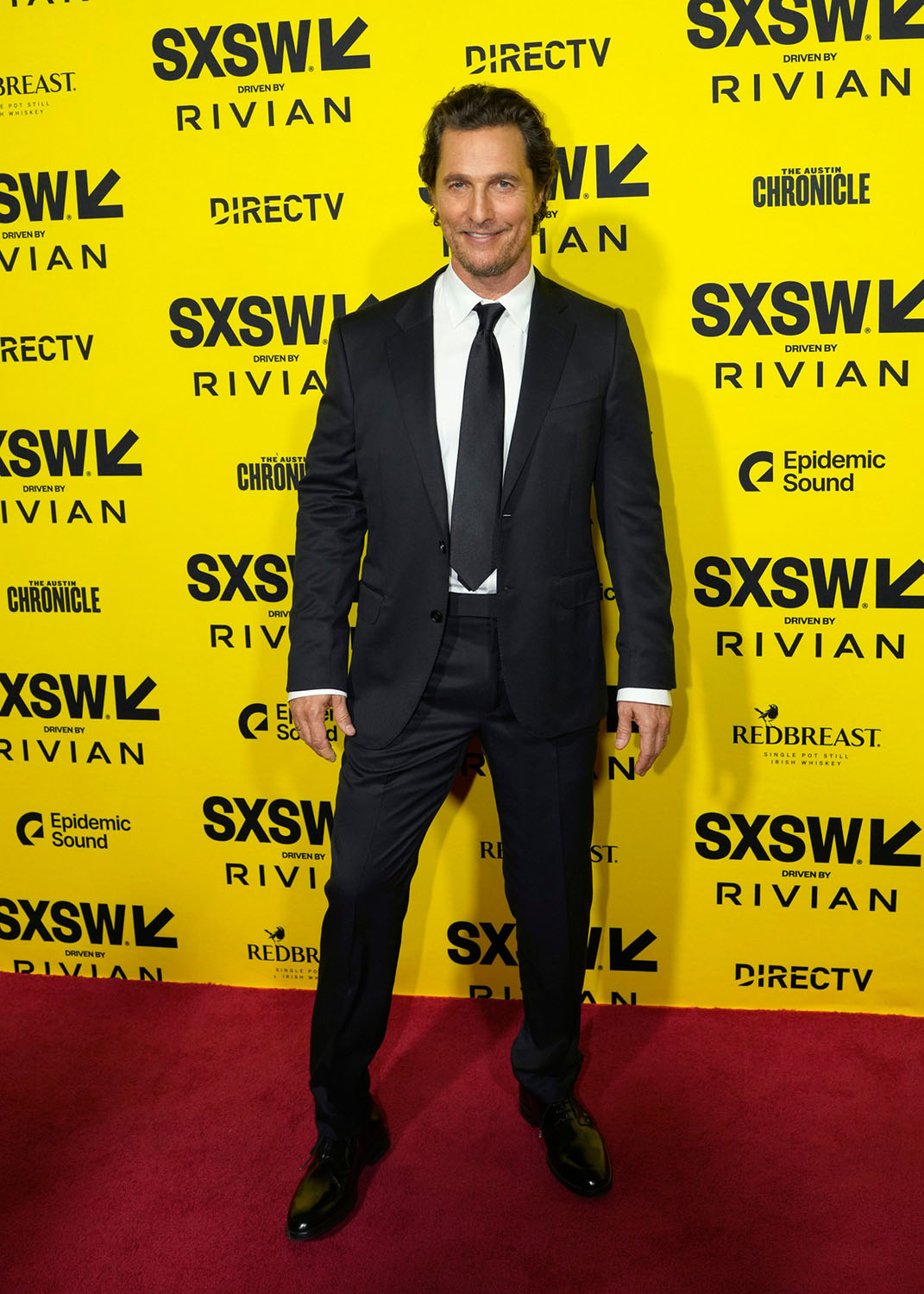 Time really flies, and Matthew knows it too. In an uncommon move, Matthew hyped up the crowd on-stage before the screening, and recounted his history with the film festival, and the whirlwind of the past six years. Sure, he last had his film The Beach Bum debut at SXSW in 2019, but even he cannot believe it's been almost six years since he's appeared on-screen outside of a voice role, reminding the crowd he wrote and released a bestselling memoir, Greenlights during that window. And it's not like he has been off our radar completely. Matthew's a tuna salad recipe king, LOL.