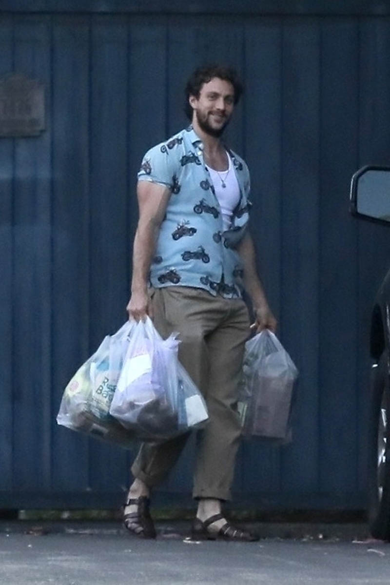 Just in time though, because this is how these things work out, here are new photos of Aaron Taylor-Johnson coming home from a grocery shop this weekend. Thanks for staying with us here at LaineyGossip after all these years!