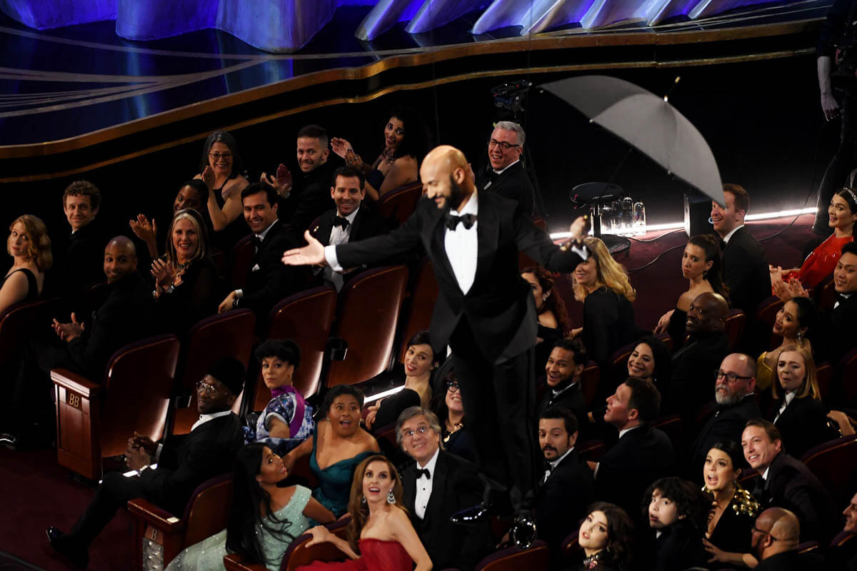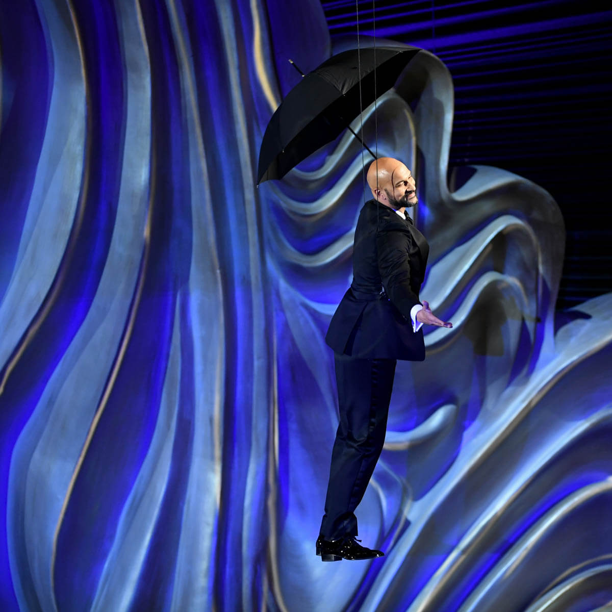 (This must also have been the philosophy of another they’d-be-lucky-to-get-him presenter, Keegan-Michael Key, who rode his Mary-Poppins-tribute descent from the ceiling with the joy usually reserved for a 9-year-old riding his first-ever roller coaster on his birthday:)