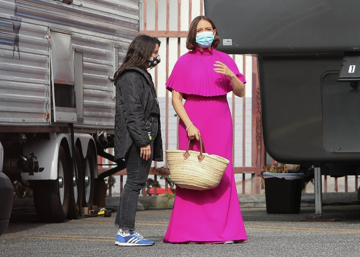 But like Big Mouth, Human Resources is animated. So there is no set for Maya Rudolph to go to, only a studio to record her dialogue, let alone costumes for her to don. And that pink gown is definitely a costume, Maya Rudolph doesn’t dress like that on her down time. I think these photos might actually be from the set of the as-yet-unnamed Apple TV+ project from Alan Yang and Matt Hubbard in which Rudolph plays a woman whose husband leaves her over $80 billion. In that context, doesn’t that pink gown look like something a billionairess would wear? (Not the crocs, I assume she has costume shoes, which are probably uncomfortable, to wear as well.) Or, Human Resources has a live action component, in which case, I take it all back.