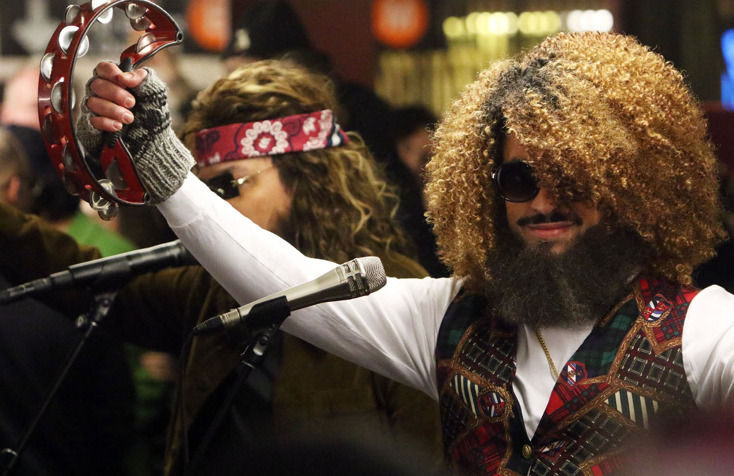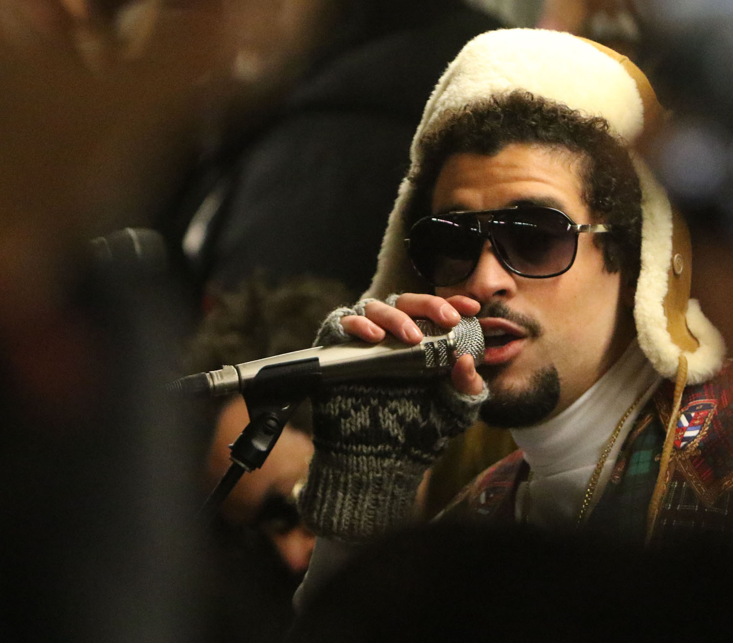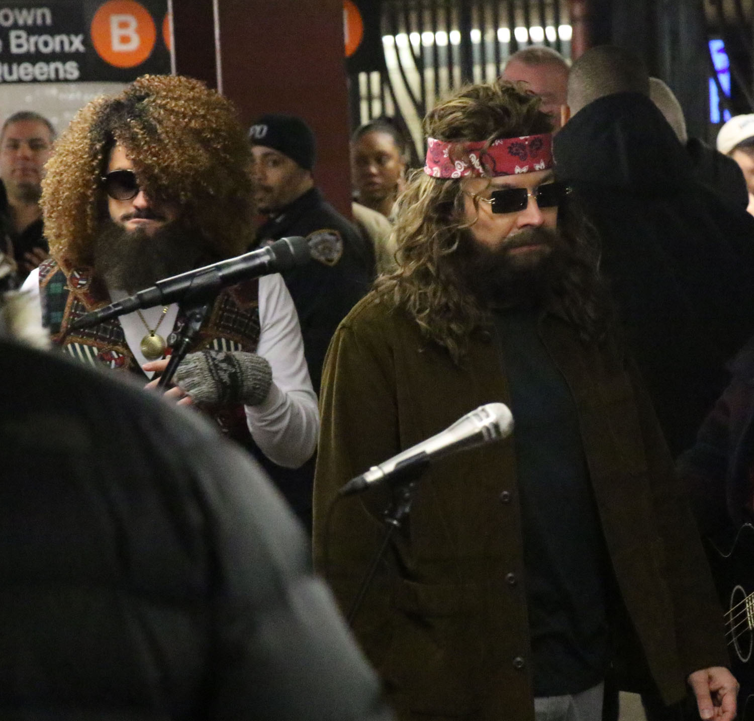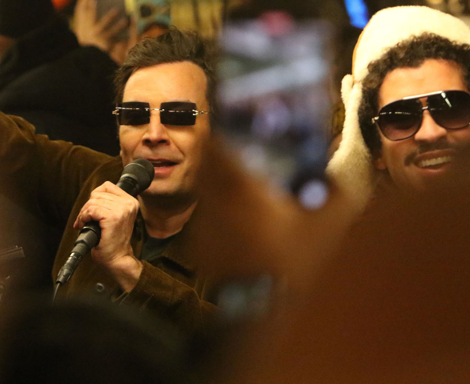 Attached - Bad Bunny performing at a subway station with Jimmy Fallon yesterday in NYC.