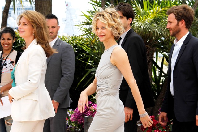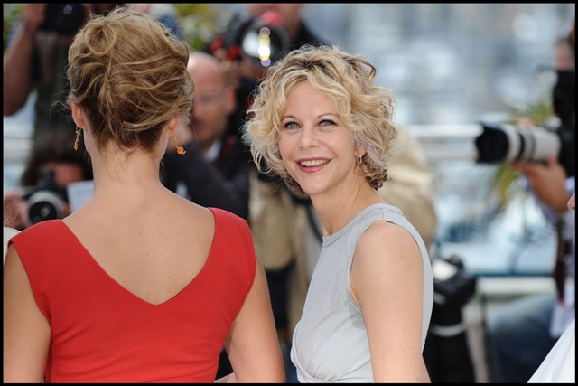 Maybe I have a sun buzz. Meg Ryan was here in Cannes over the weekend at a photocall for the documentary Countdown to Zero. The trailer is below. Scared the sh-t out of me. Made me want to cry. Meg’s face however doesn’t scare me or make me want to cry like it used to. Have I grown accustomed to it (very possible) or has she geared down on the f-ckery?
