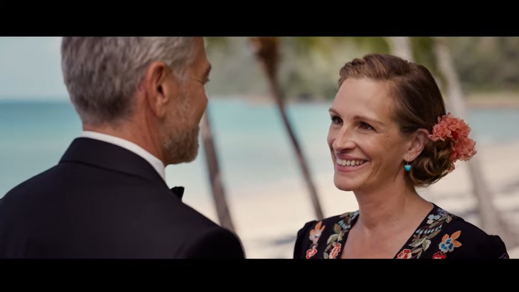 Have they maybe given away the whole movie? Probably? Is this a problem? Not for me. Because they’ve held back the foregone conclusion – which is that these two exes are going to get back together … right? After all, this is the formula. This is the trope. Enemies to lovers. Exes finding each other again. Beautiful people bickering on holiday and then ending up in bed. Only this time when they do get busted for it the next morning it’ll be by their daughter. Who is already mortified by the dancing. This is George Clooney bringing Big Dad Energy, actively trying as hard as he can to be as uncool as possible. This is Julia Roberts bringing Big Mom Energy, actively trying as hard (she doesn’t have to try that hard) to be as overbearing and sanctimonious as possible. These are two of the most familiar movie stars of their time trying to outplay each other, both onscreen and ONSCREEN. As in through the story, obviously, but also the way they’re going for it with their characters. This wasn’t a job, and it doesn’t look like a job for either of them. They just signed up for a good time dunking on each other while getting paid. I will watch the sh-t out of this because you know what’s fun? Watching people have fun. Basically the opposite of a Jared Leto movie. Sign me up.