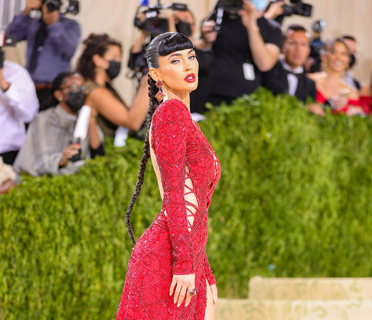 Megan’s resurgence of course is tied to Machine Gun Kelly, but he wasn’t with her at the Met Gala last night and it was a good call. This look didn’t need their tongues and their hands all over each other. This look is… well… it’s pure sex. And that’s what she talked about with Keke Palmer.