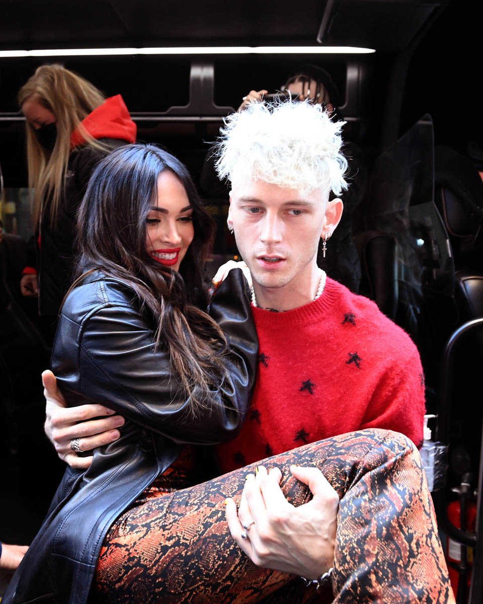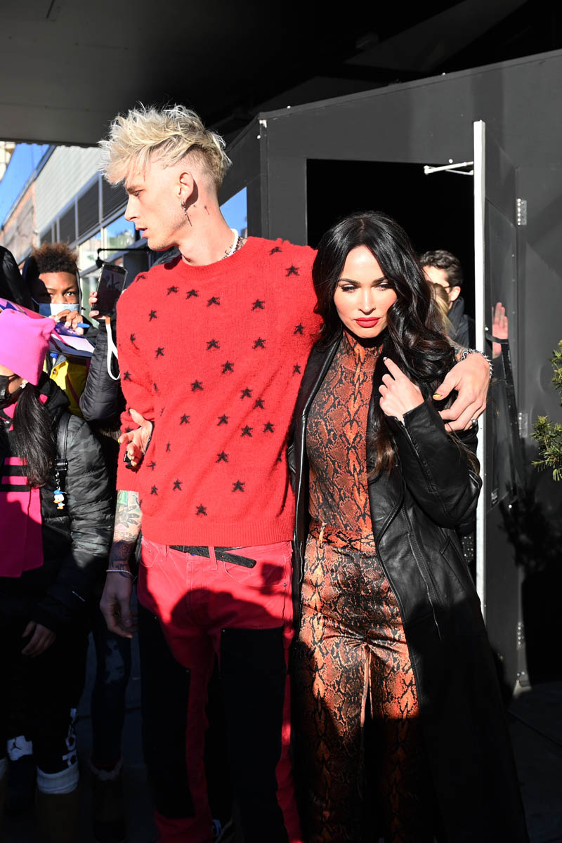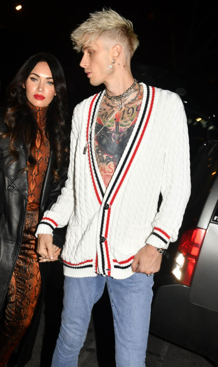 Last week, the headlines about Megan and MGK, after she was seen wearing a big ring, were about whether or not they’re engaged. She posted a “f-ck you” on Instagram in response and a source tells PEOPLE that there is no engagement, not yet anyway:
