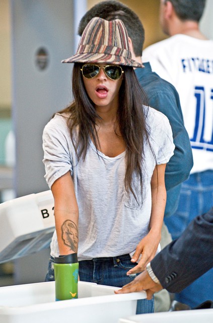 Megan was photographed today at LAX heading out for a couple of quick days of promotion before returning by Sunday for the Movie Awards.