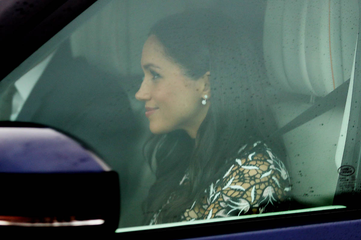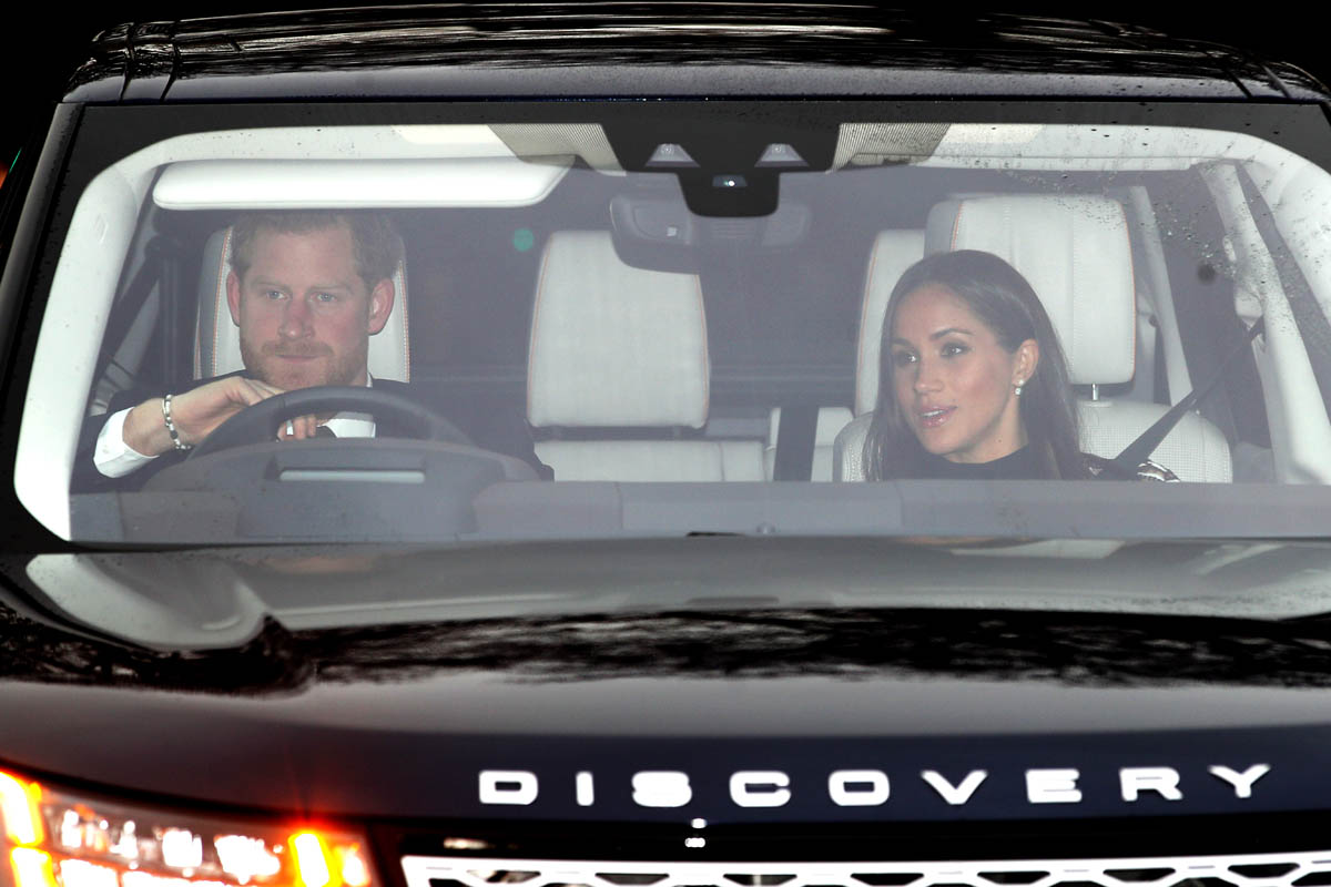 It’s an annual tradition. The Queen hosts a Christmas lunch at Buckingham Palace. And for the first time, Prince Harry has an official plus one. Here he is arriving with Meghan Markle. They always drive themselves on this occasion, right? Prince William was also seen pulling in today with Kate in the passenger seat and presumably a nanny behind them. So far no photos yet of Big G and Charlotte in the backseat. Will post if I get them and if they’re good.
