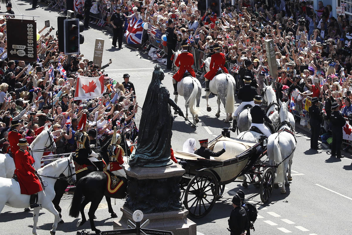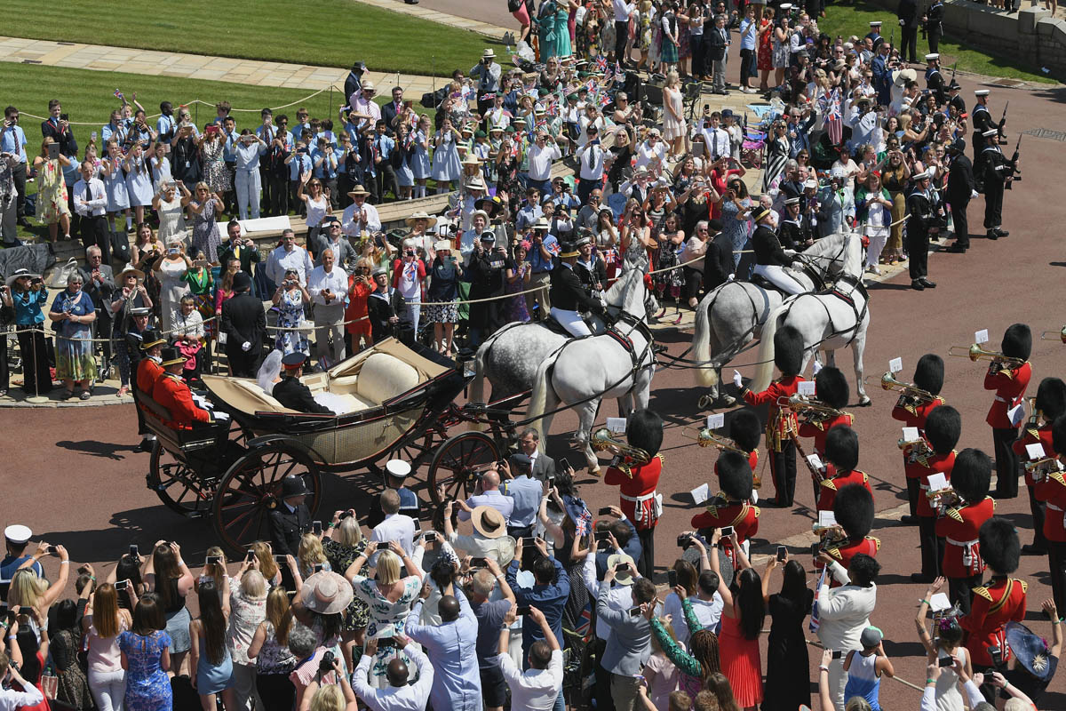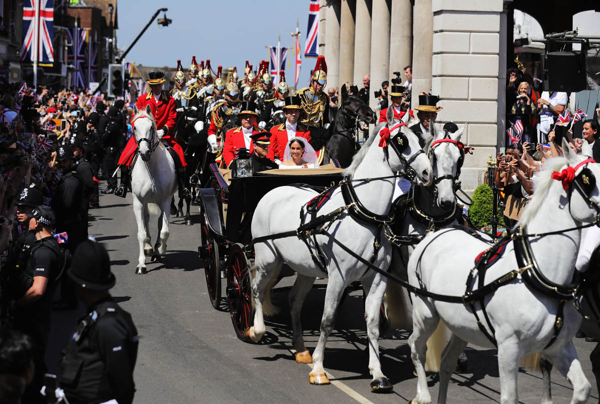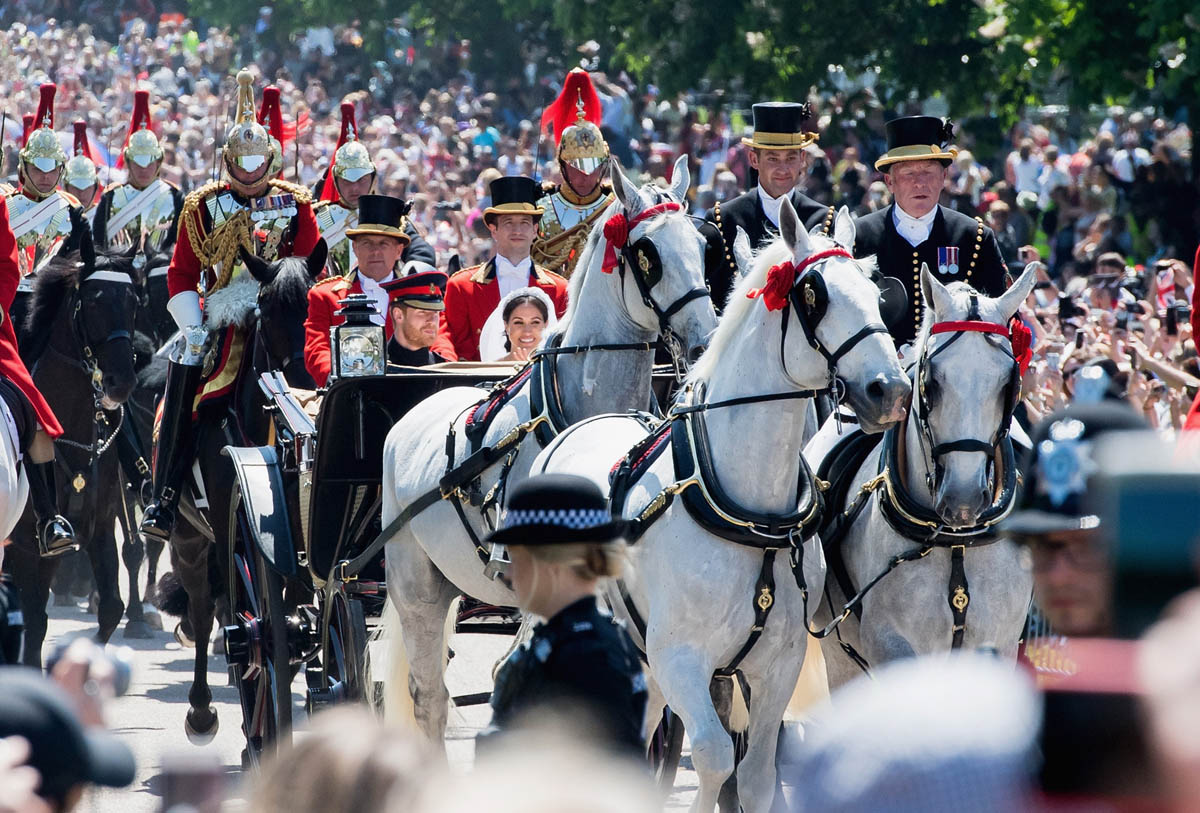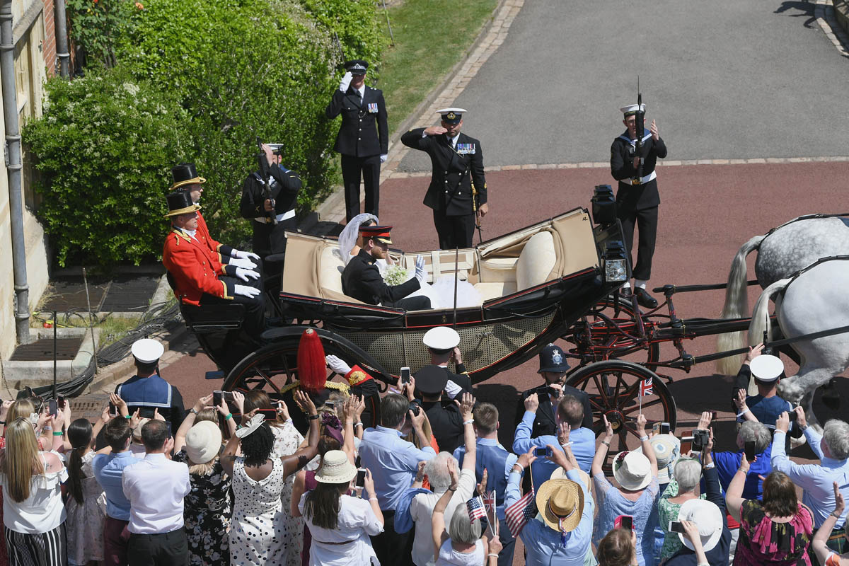 And then. What you don’t get in London is the Long Walk. This is THE fairy tale - the carriage coming up that path, heading towards an actual f-cking old ass castle, with Meghan’s veil lightly blowing, and all those people cheering on both sides, on a perfect spring day in May...you almost can’t beat it. It’s a breathtaking view. It’s the most exclusive view. These pictures are like a storybook coming to life. And that’s exactly the show they wanted to give to the world.