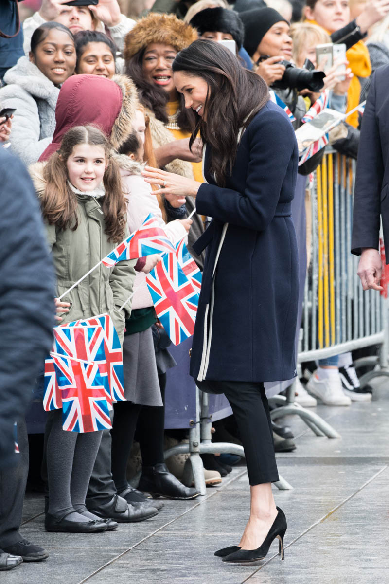 Prince Harry and Meghan Markle – in pants! again! but with extra deliberateness today! – were in Birmingham today, International Women’s Day, visiting with students and future changemakers, and they also spent time with Stemettes, encouraging girls and women to pursue careers in STEM. The Kensington Palace Twitter account has several videos and photos from their day, including this tweet that features primarily Meghan.