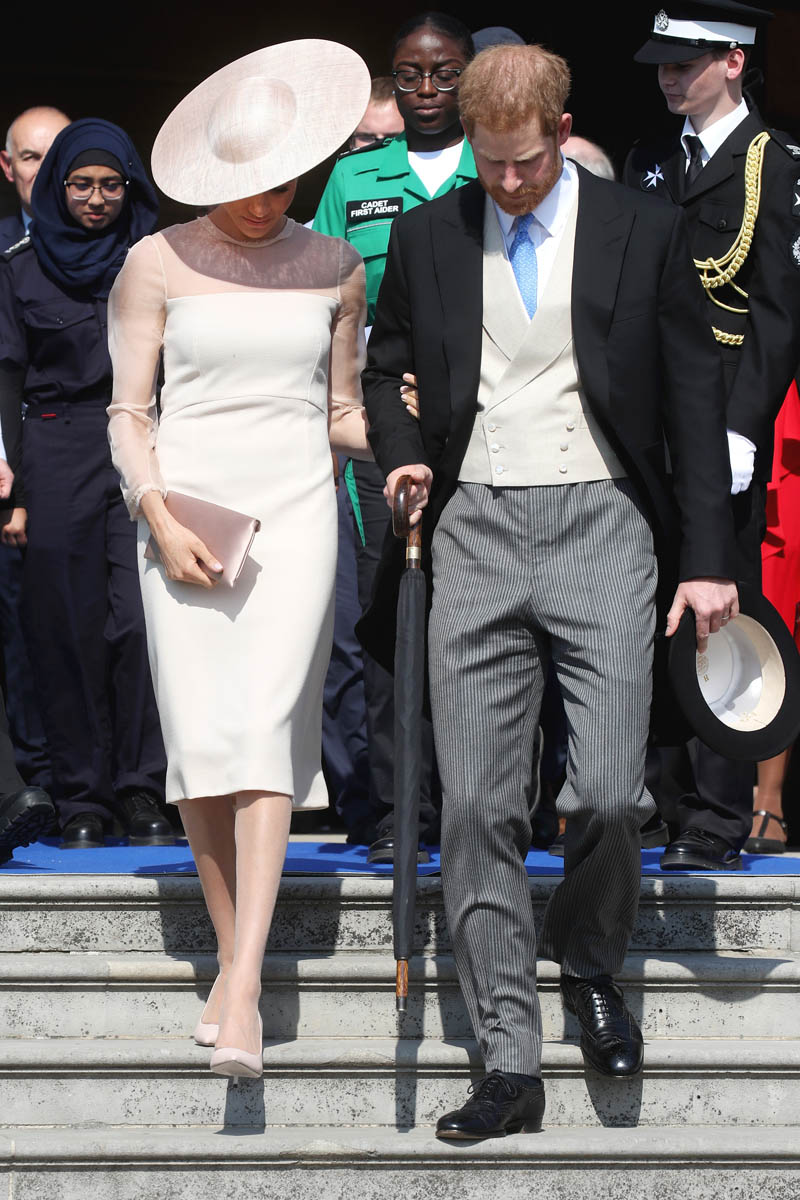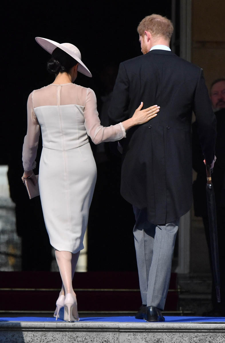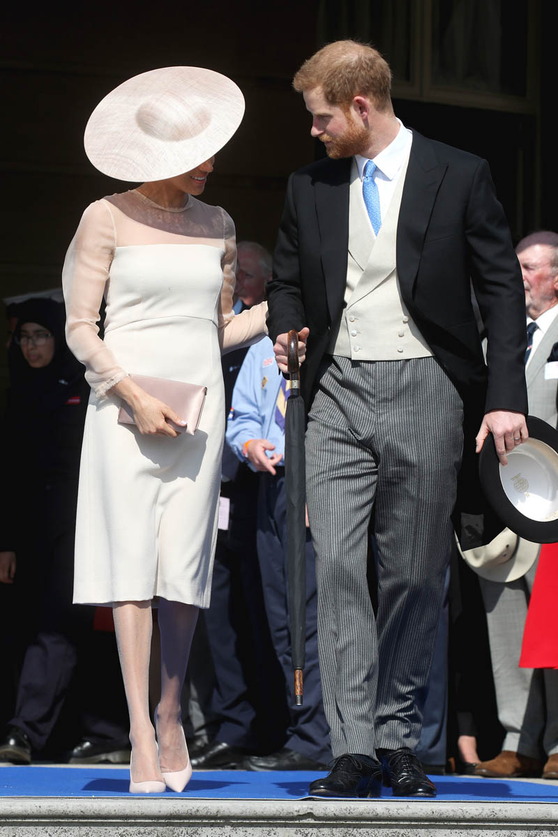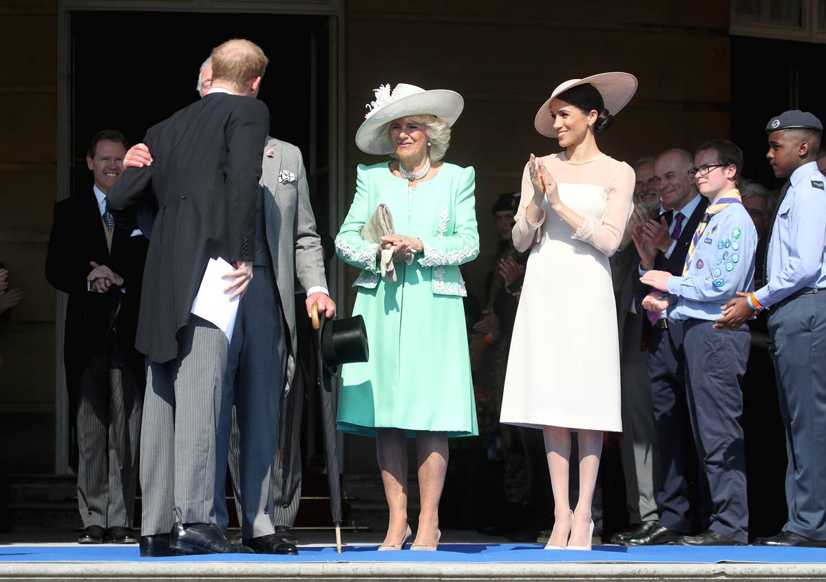 Today is the first time that Meghan Markle’s been out on royal duty for a public engagement where she’s officially an HRH, Her Royal Highness. They are now the Duke and Duchess of Sussex. But, seriously, how often are we going to be calling Prince Harry not Prince Harry but the Duke of Sussex? Like, the BBC will, fine, but he’ll be known forever and ever as Prince Harry, you know this. So here’s Prince Harry with Royal Meghan today at Prince Charles’s garden party appearing for the first time since their wedding. As you can see, she seems to be getting on well with her new in-laws. Charles looks rather delighted with her. And this is a solid family photo of the four of them posing with representatives from Charles’s patronages: