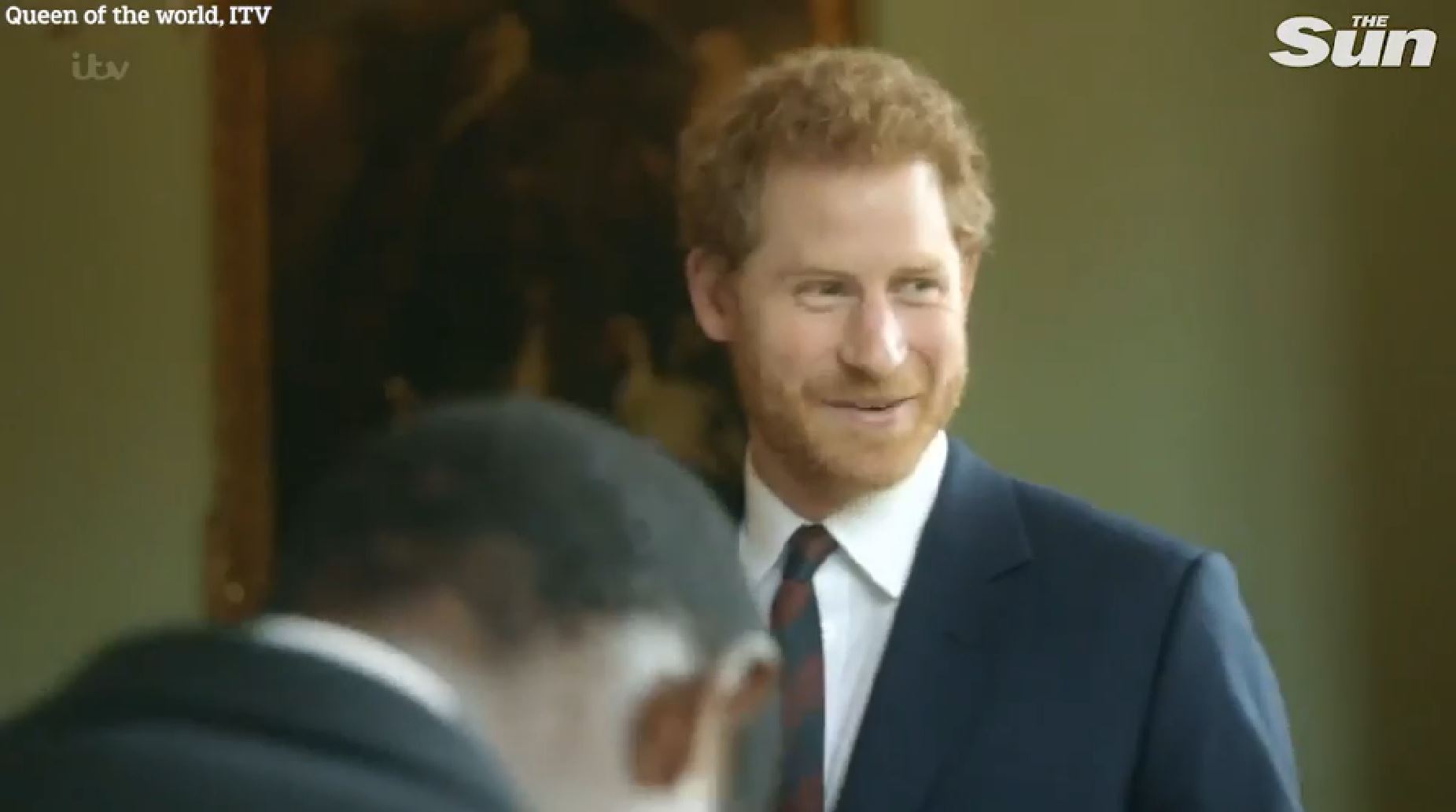 First of all, the editing made me laugh. During Harry’s remarks about running into Her Majesty in the corridor and trying not to panic, there’s a shot of him greeting people while an officer in the foreground picks his nose.