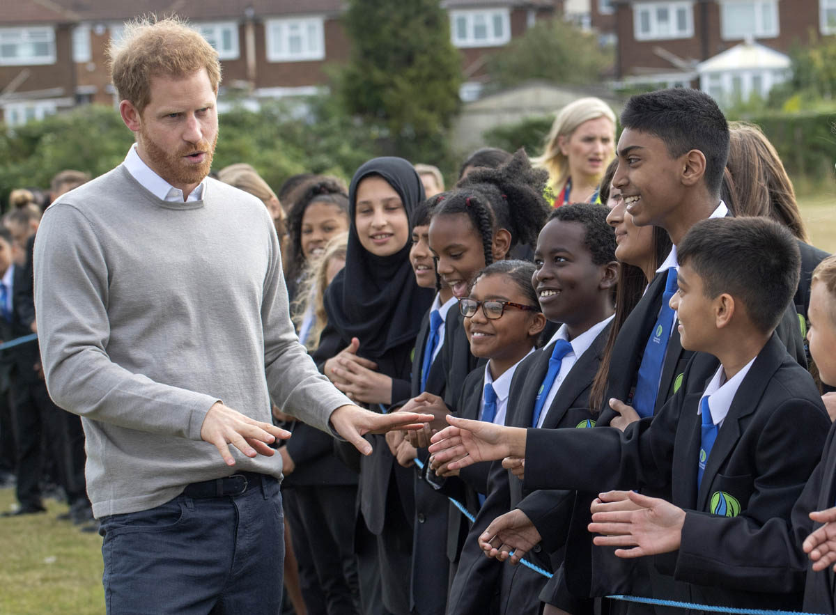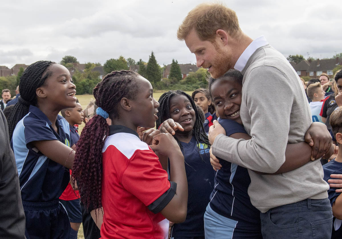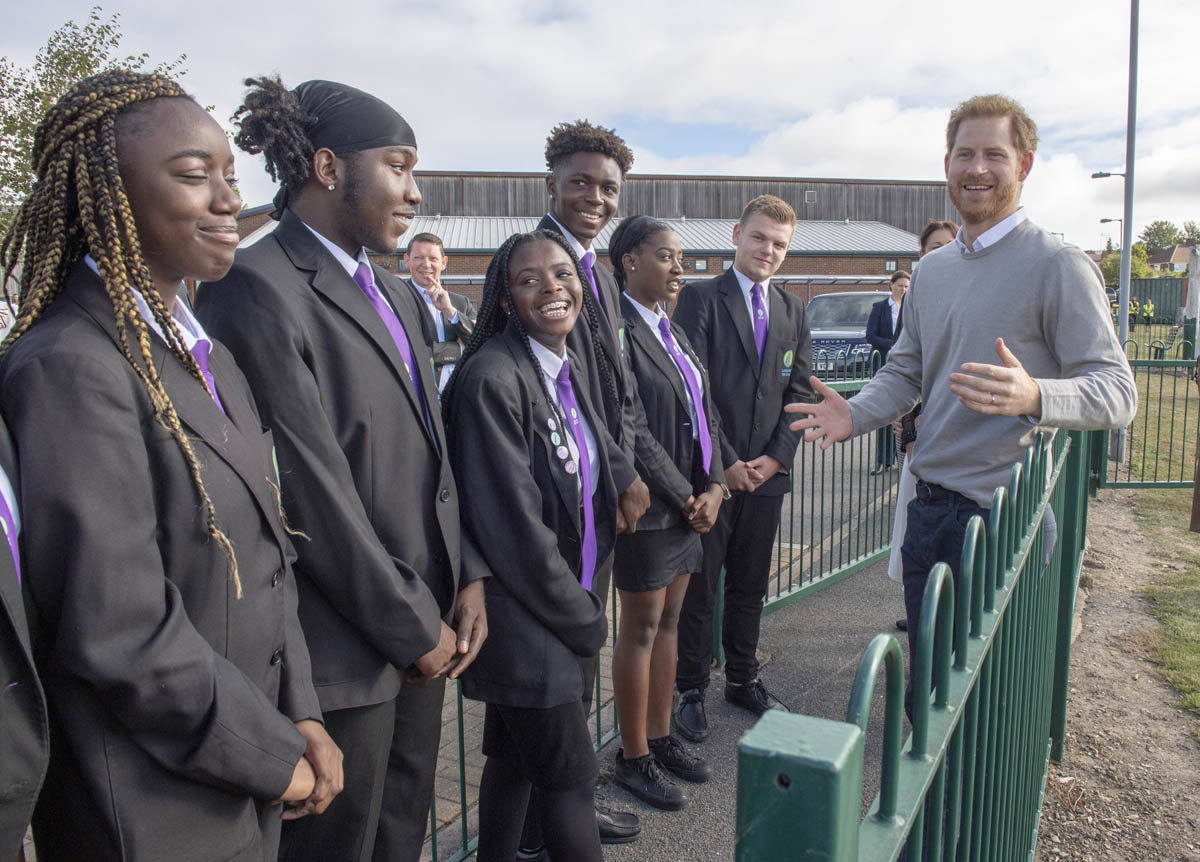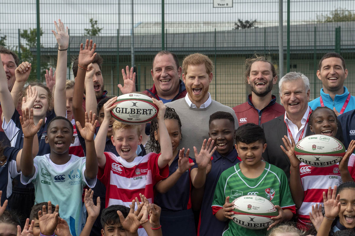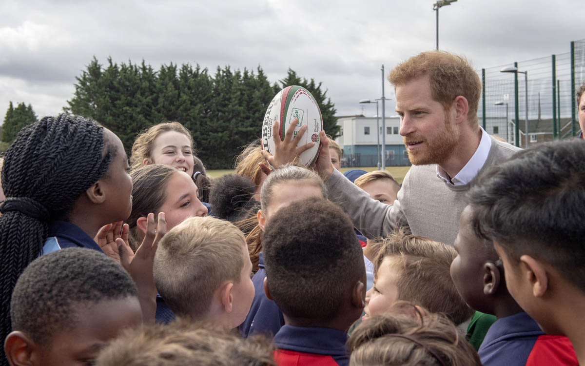 Attached - Prince Harry visiting The Rugby Football Union All Schools Programme on Thurdsay in Luton, England.