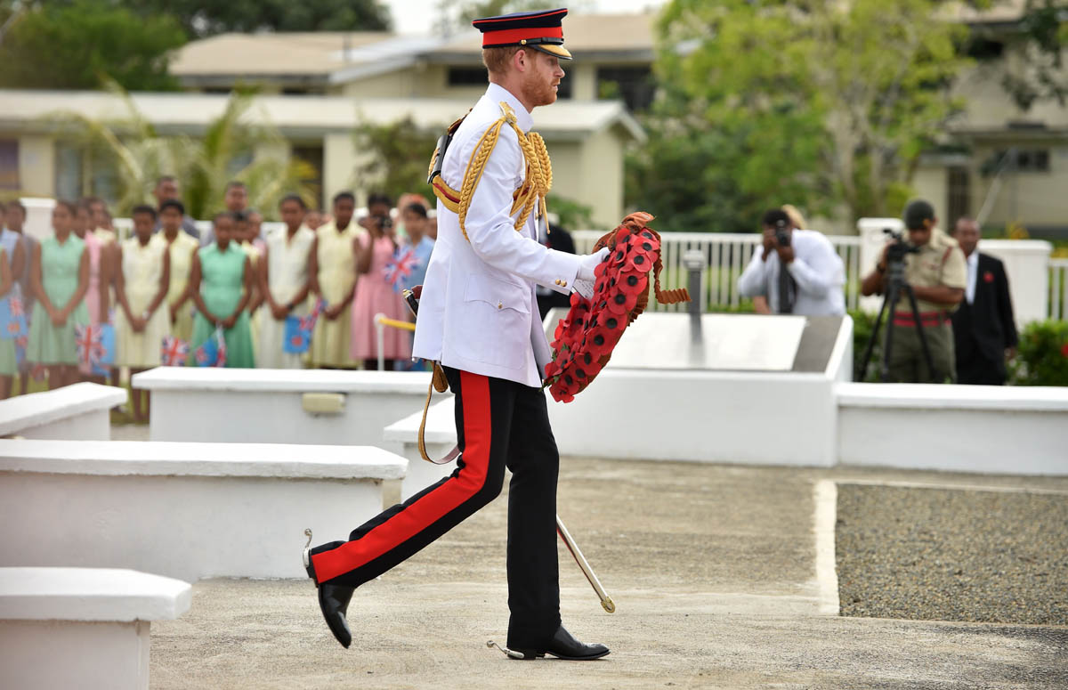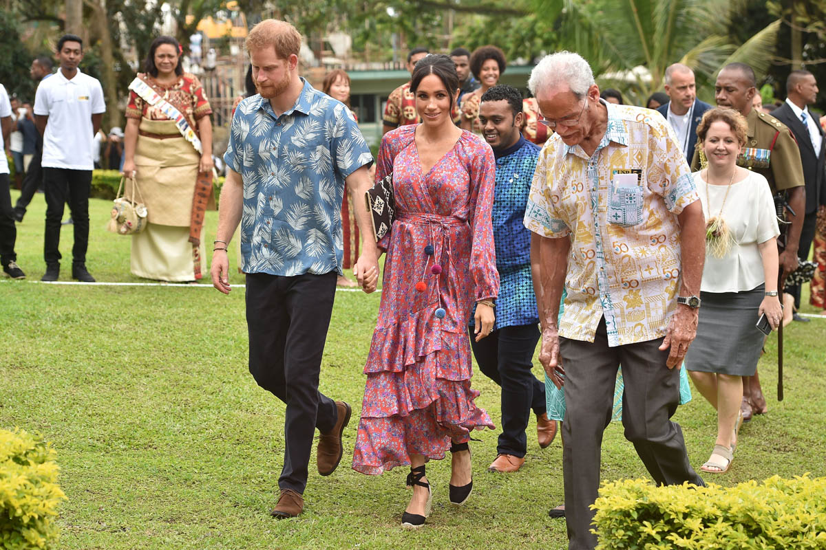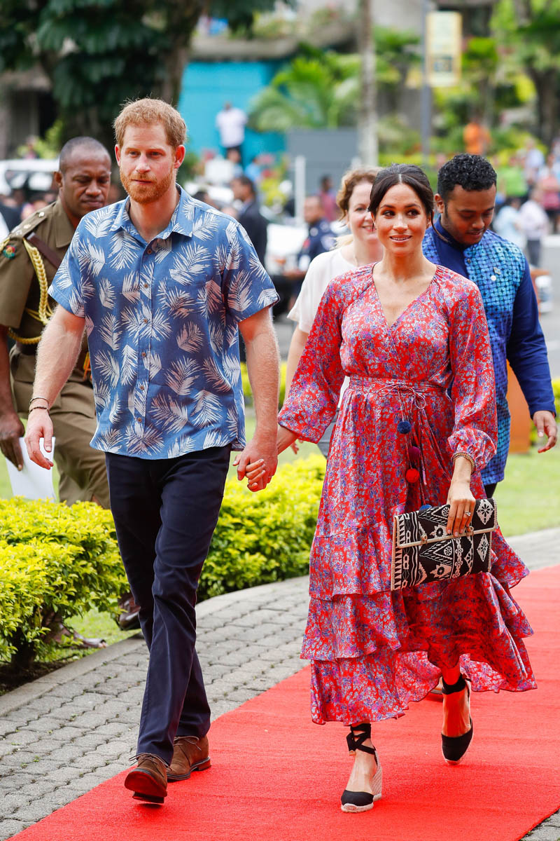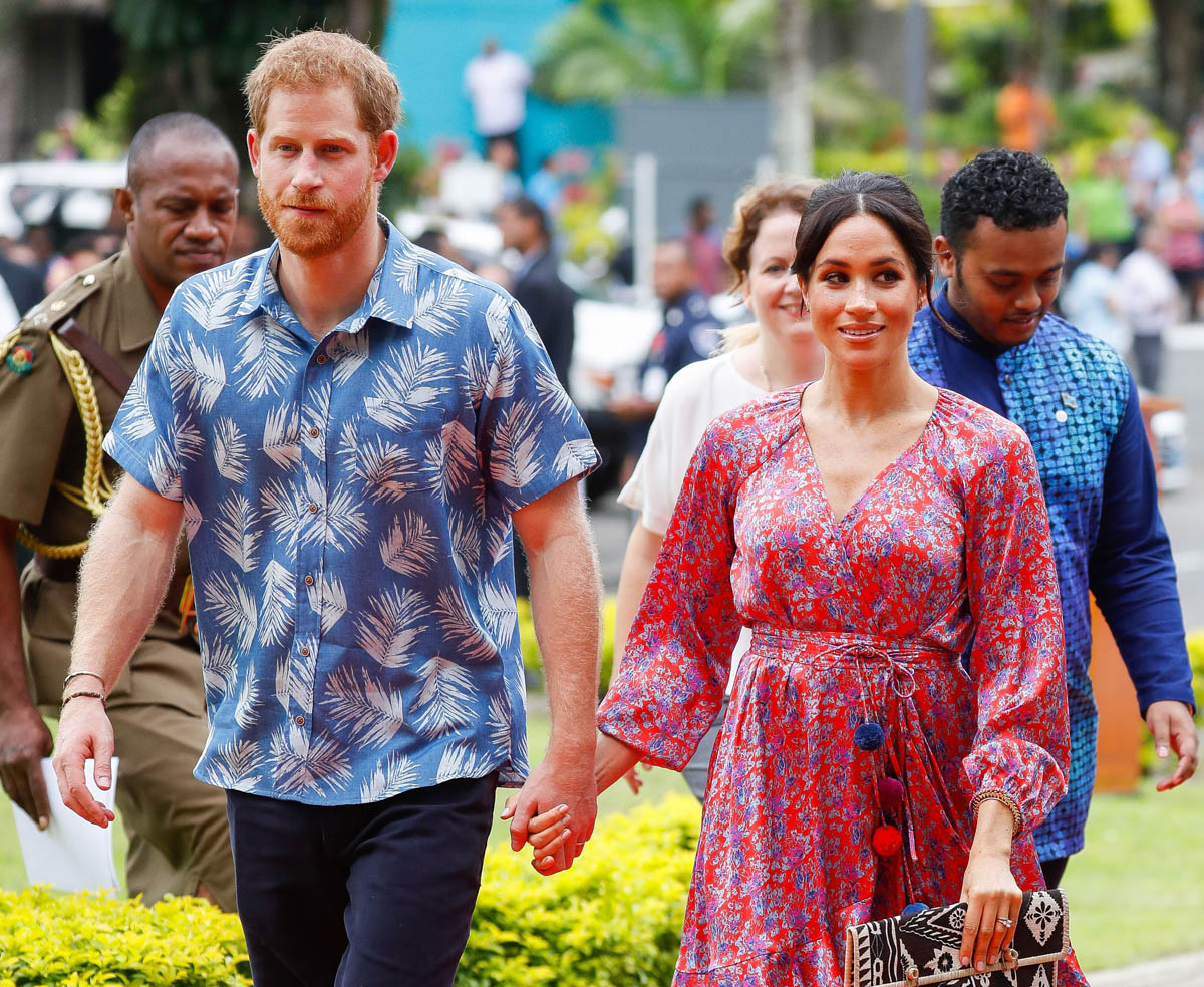 Prince Harry and Meghan Markle have now concluded a full day of events in Fiji. Harry was in uniform to lay a wreath at the Fiji War Memorial and visit with veterans. He also planted a tree at the Colo-i-Suva Forest as a representative for the Queens Canopy. They both spoke at the University of the South Pacific (more on that in a bit), and Royal Meghan stopped by at Suka Market to meet with female entrepreneurs as part of a UN initiative, although that part of the itinerary was cut short because of security concerns. As mentioned on Monday, and we’ll come back to this in the next post, the crowds for Harry and Meghan throughout this tour have been huge. Their popularity is undeniable. And already there’s been talk of what this means where royal interpersonal relationships and politics are concerned.