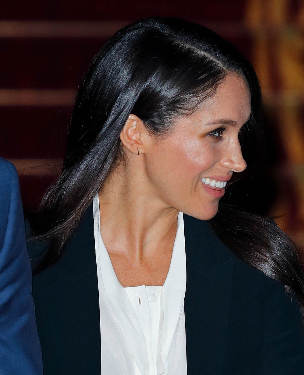Like Princess Kate in Norway, Meghan also wore McQueen. But it was a McQueen tuxedo. A beautifully tailored McQueen tuxedo. I love the fit of these pants, specifically where they end on the leg. This is where I want my tuxedo pants to end for the tuxedo I’ve been looking for but still can’t find. Unfortunately it can’t be black. And I can’t wear a shirt underneath. I guess I should stop talking about myself.