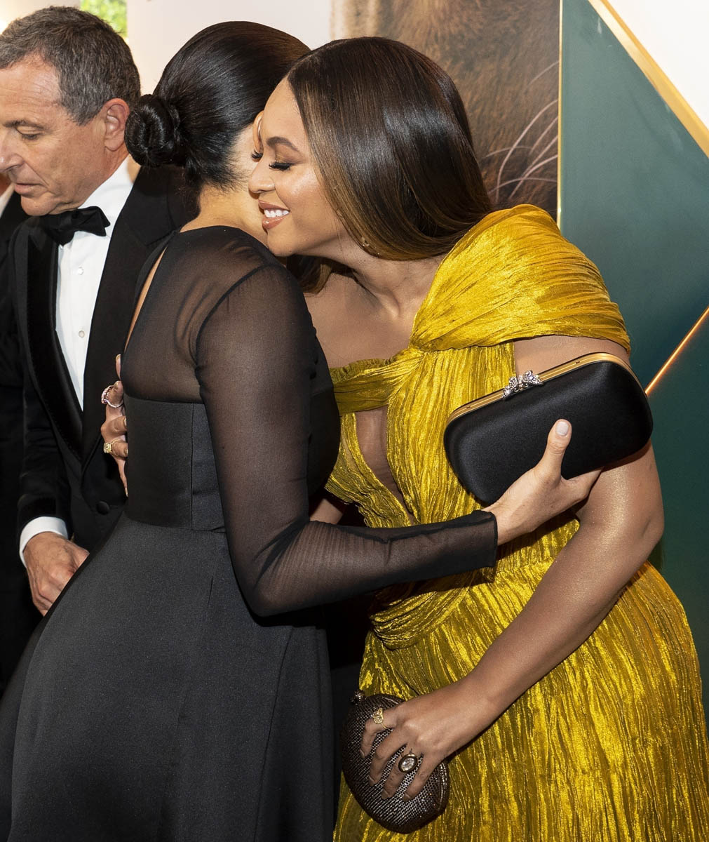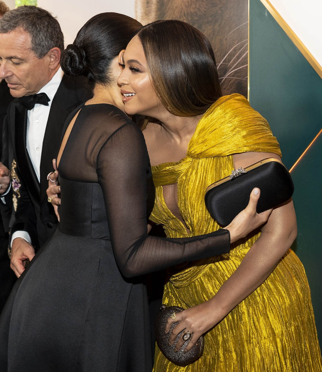 Beyoncé anointed Meghan, virtually. Yesterday, at the UK premiere of The Lion King, she anointed Meghan in person. “My princess” is how she greeted her when Meghan approached to greet her. “My” princess. This is the princess that Queen Beyoncé recognises, this is the title bestowed on Meghan Markle by the Queen of Culture, of all things Flawless, the Queen with the Halo, Beyoncé of Every Realm: