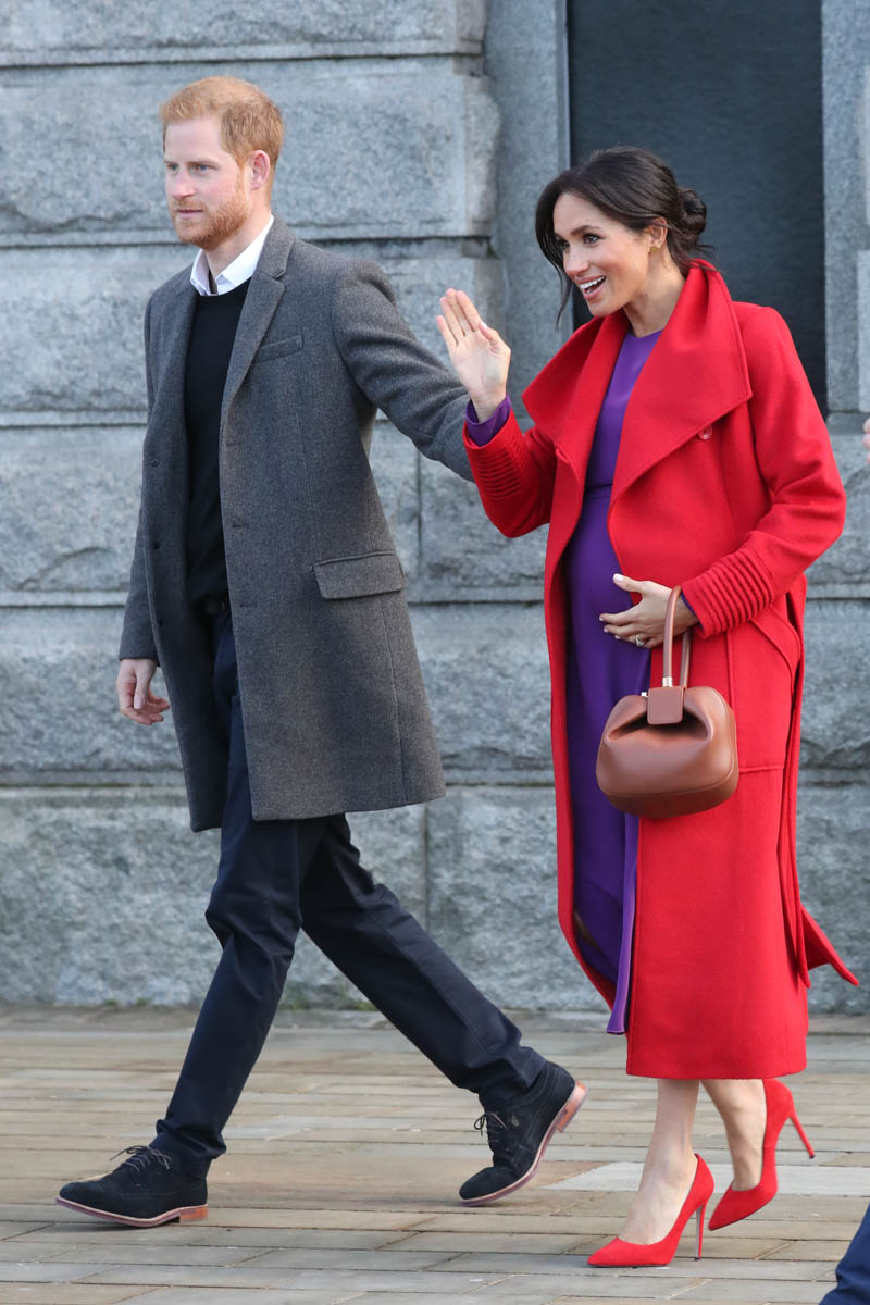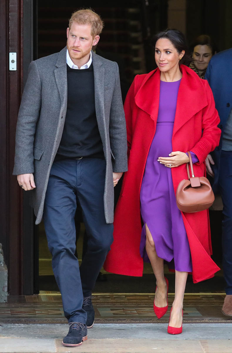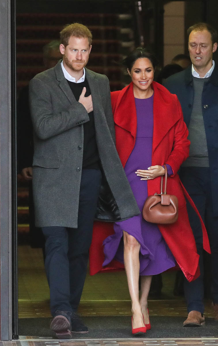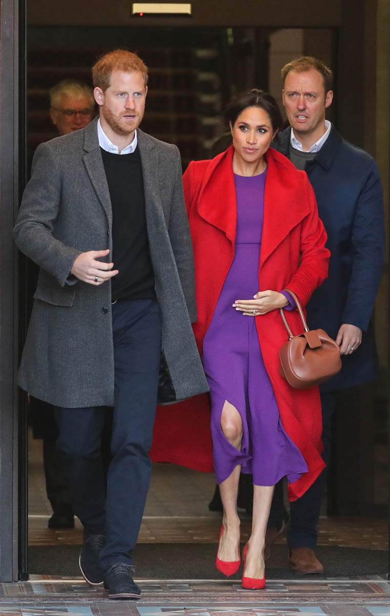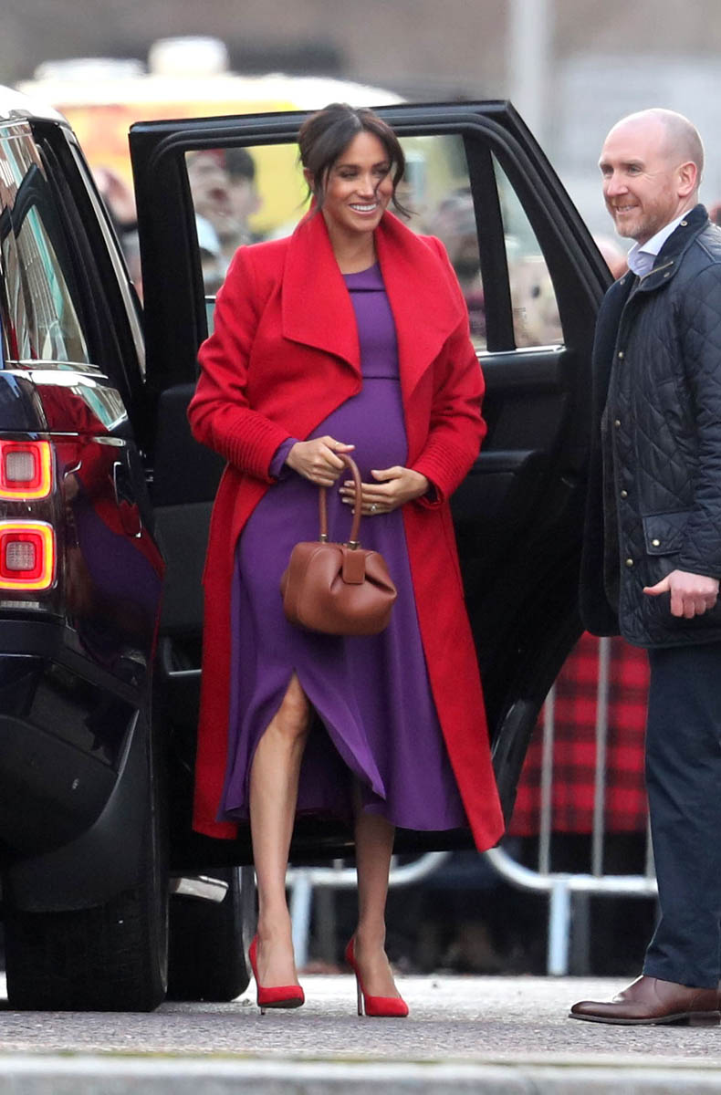 Let’s stay with today though and this outfit – all Canadian brands. I do like the red and purple here. It’s a refreshing change from all her neutrals and thus, by her standards anyway, a bold – and better – combination. Also, as you can see in some of these shots, Royal Meghan is the most determined celebrity belly-cupper that we’ve had in recent memory.