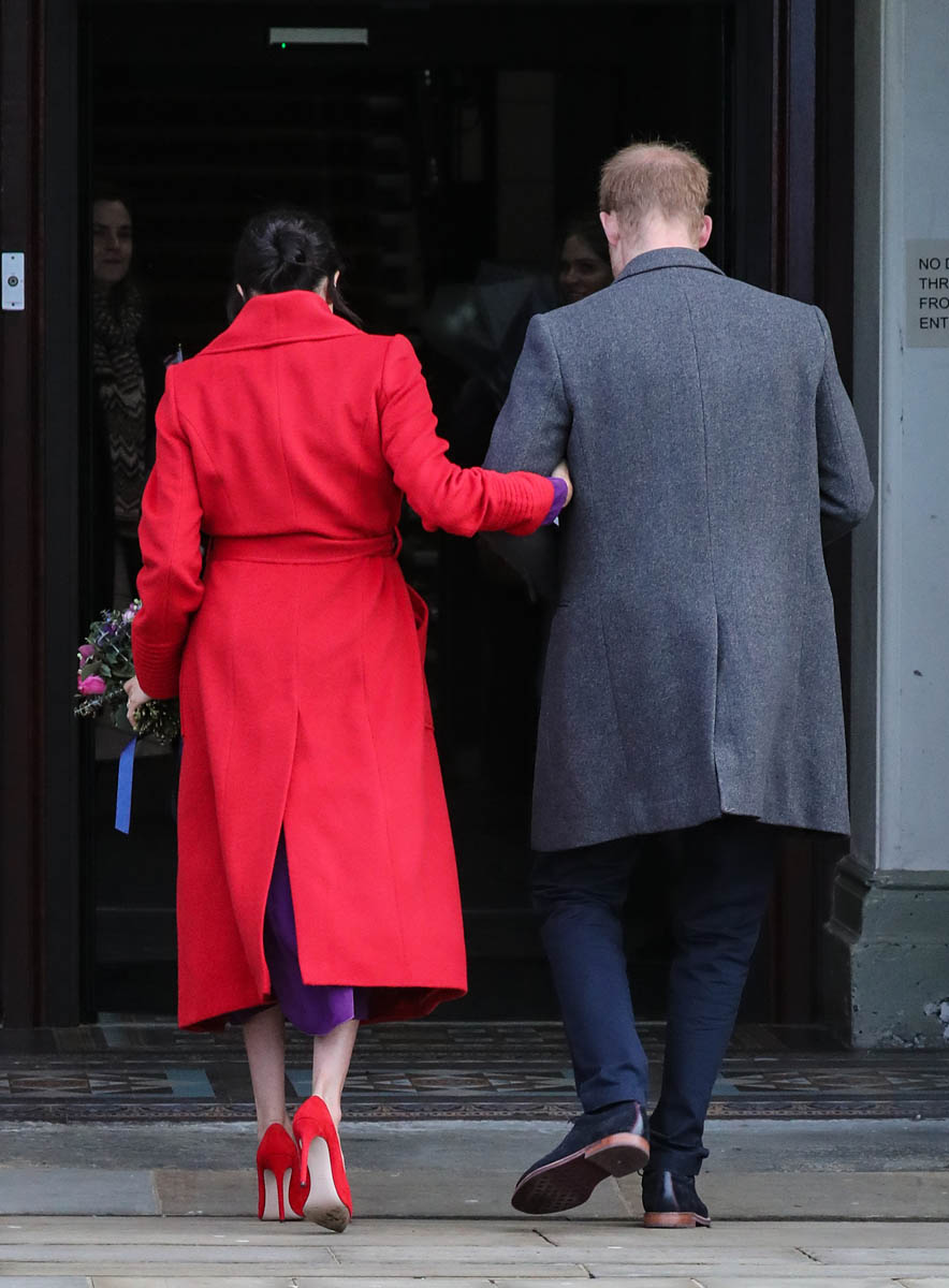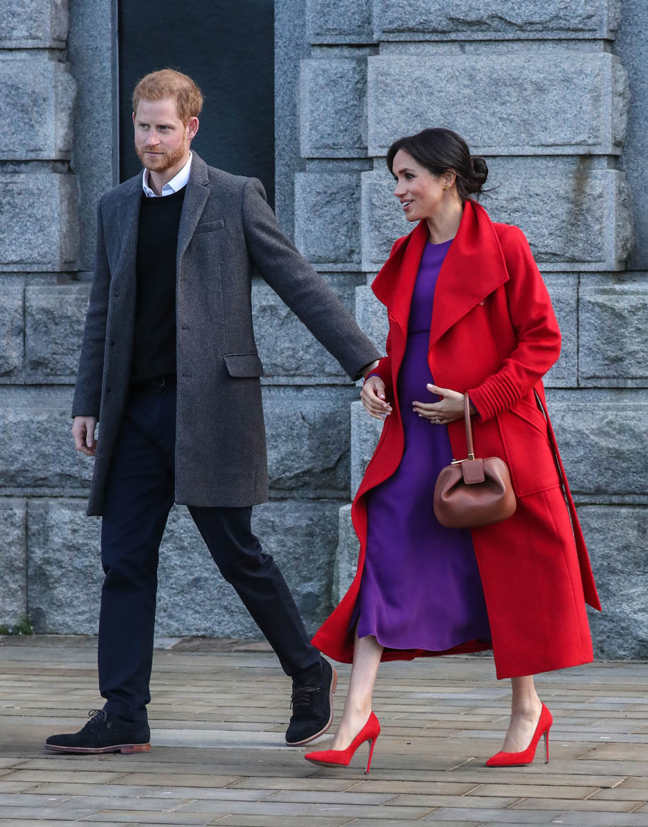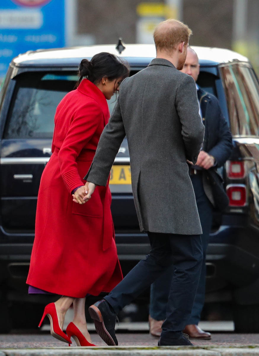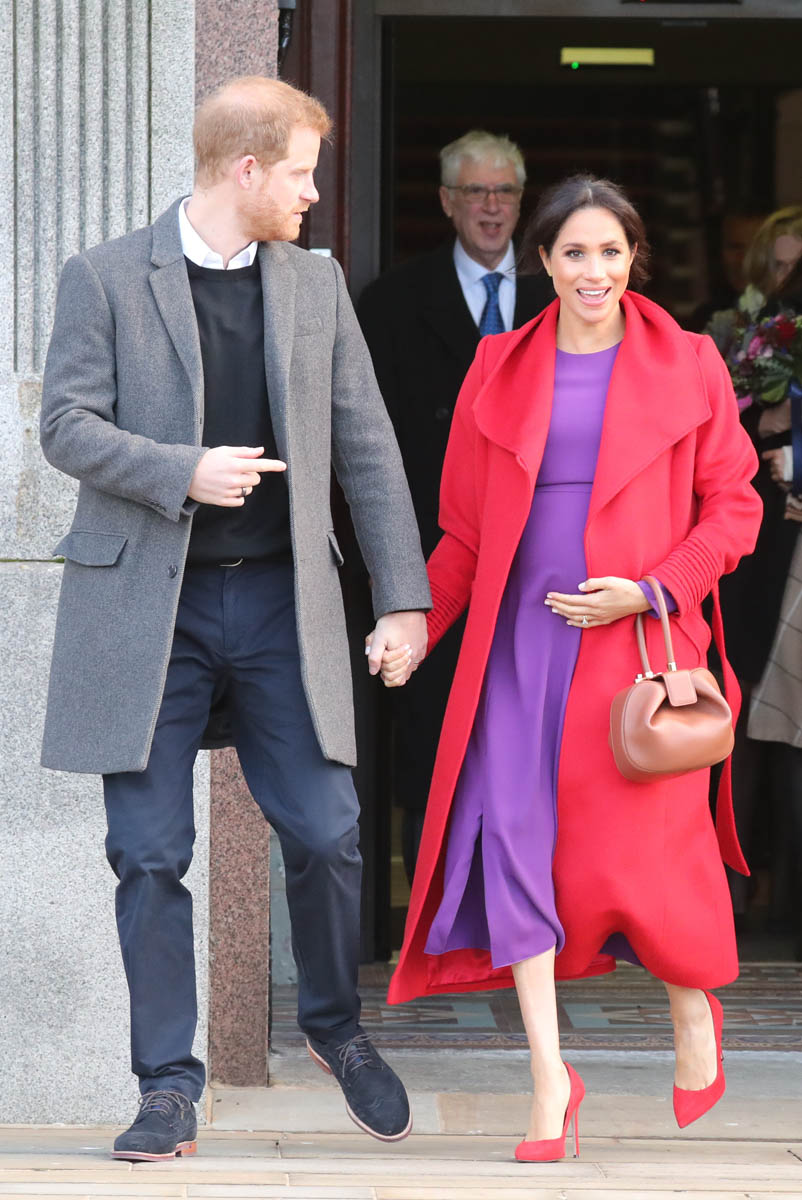 Let’s stay with today though and this outfit – all Canadian brands. I do like the red and purple here. It’s a refreshing change from all her neutrals and thus, by her standards anyway, a bold – and better – combination. Also, as you can see in some of these shots, Royal Meghan is the most determined celebrity belly-cupper that we’ve had in recent memory.