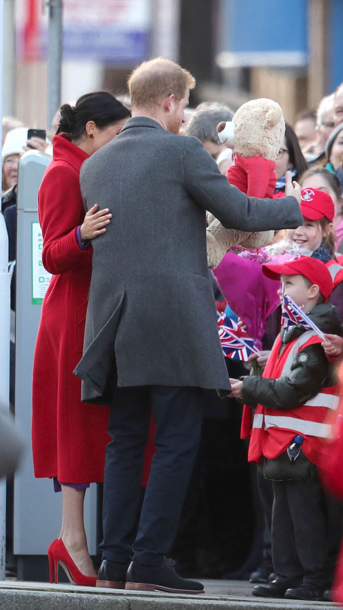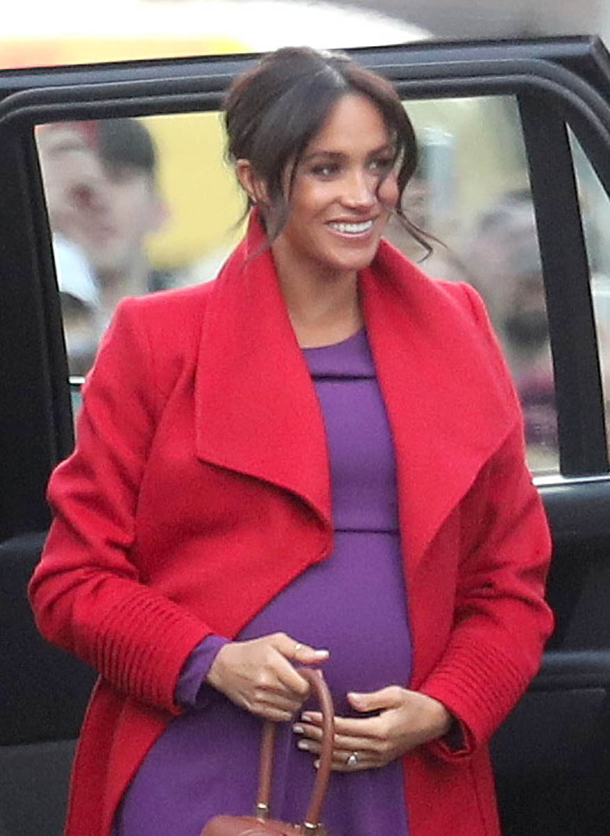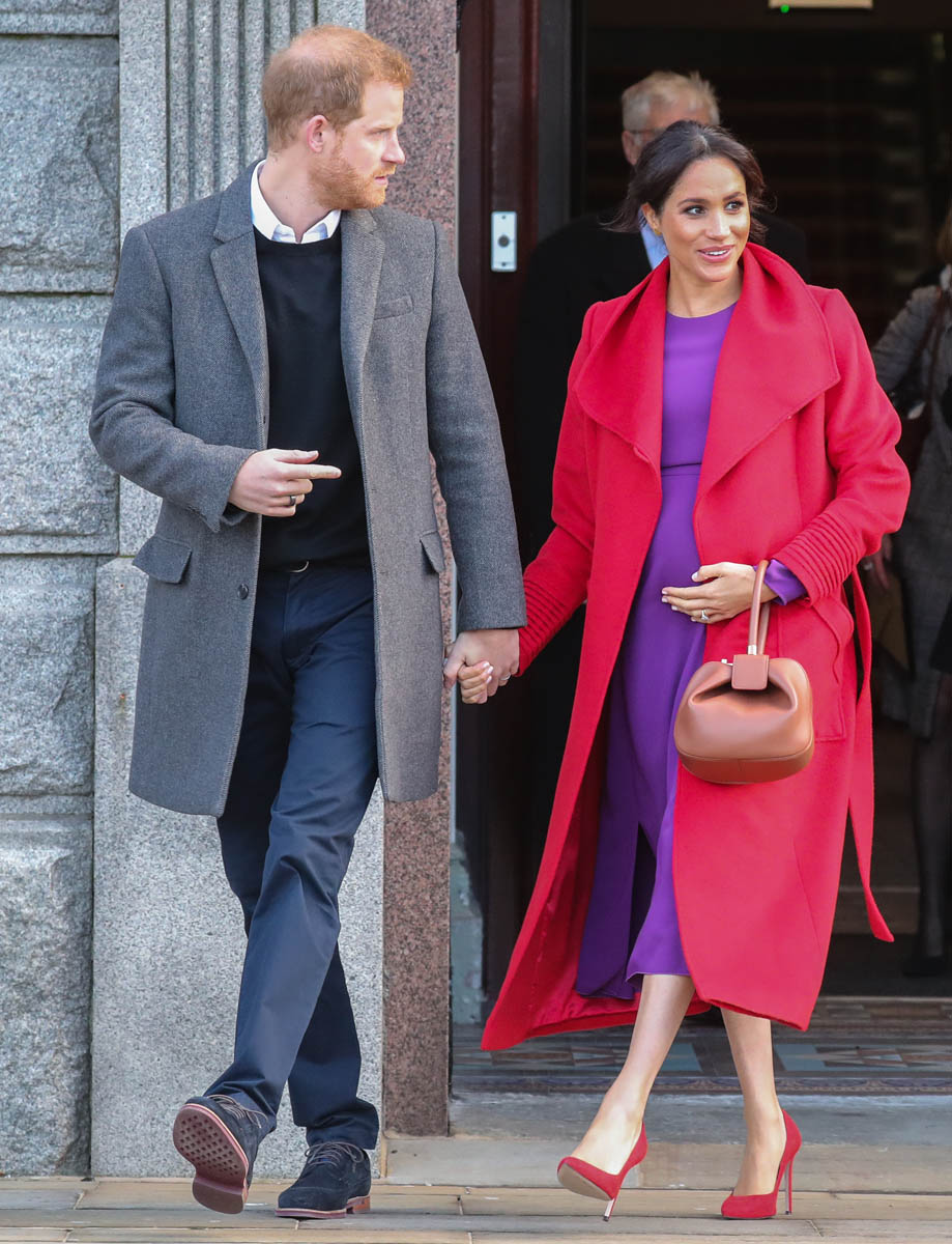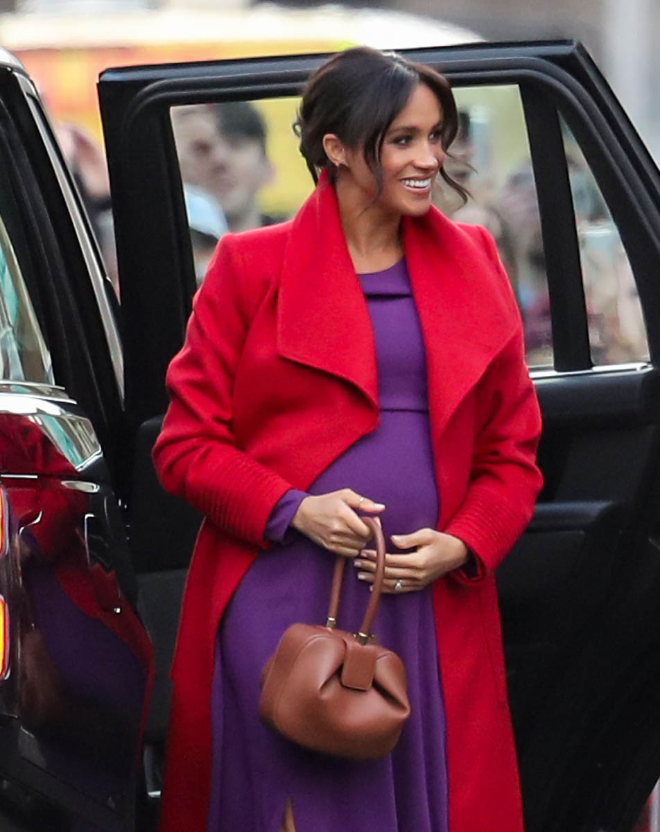 Let’s stay with today though and this outfit – all Canadian brands. I do like the red and purple here. It’s a refreshing change from all her neutrals and thus, by her standards anyway, a bold – and better – combination. Also, as you can see in some of these shots, Royal Meghan is the most determined celebrity belly-cupper that we’ve had in recent memory.