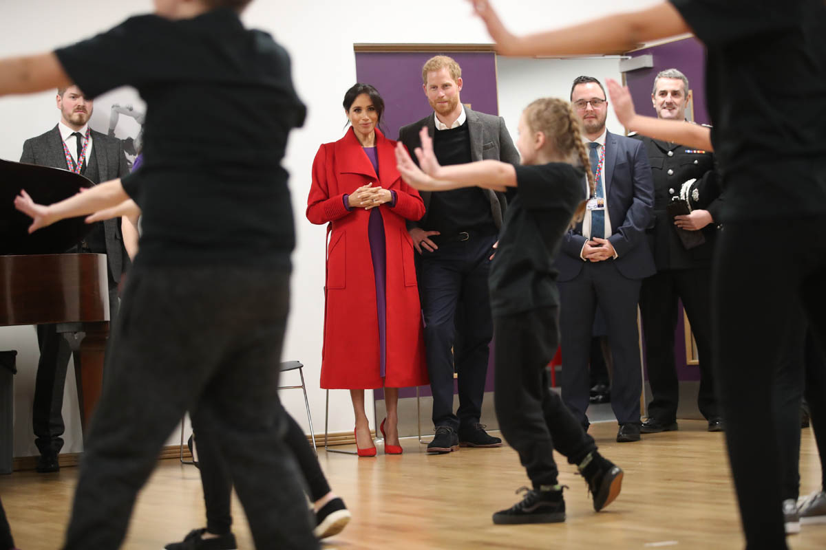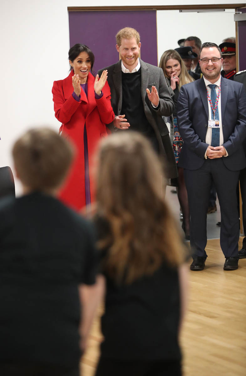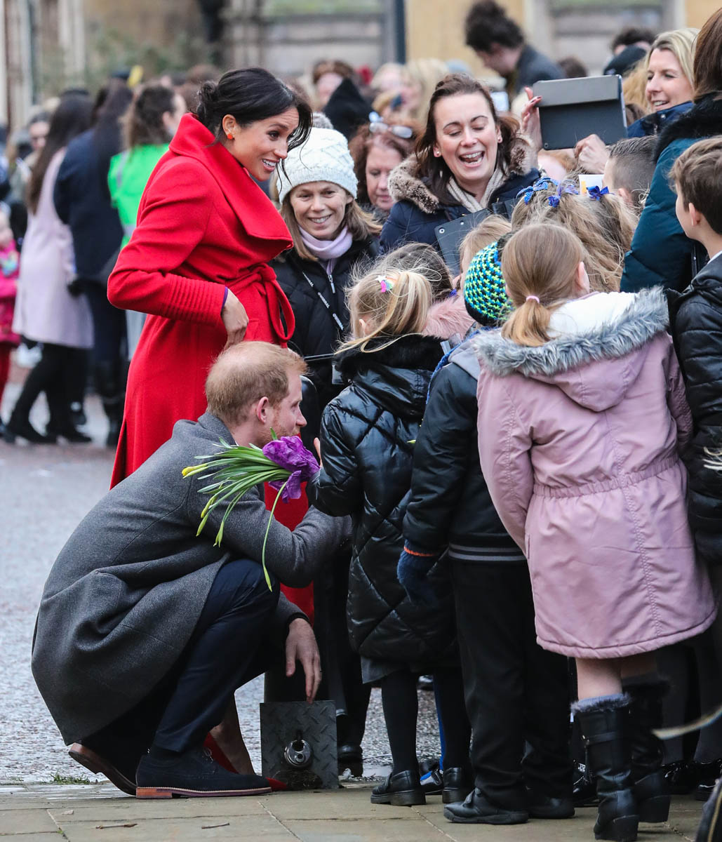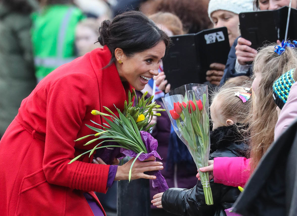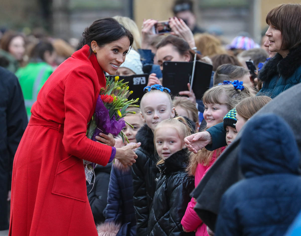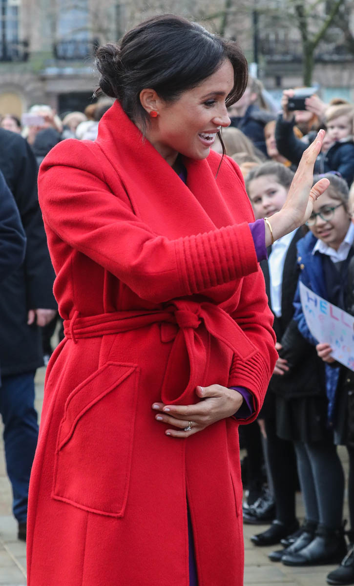 Kitty Dudley, 9, from St Anne’s Primary School in nearby Rockferry, said, “Meghan came up to me and asked me how old I was and where I went to school. I could see her bump and I asked if she was having a boy or a girl and she said, ‘We don’t know whether it’s a boy or girl, we are keeping it as a surprise.’ “