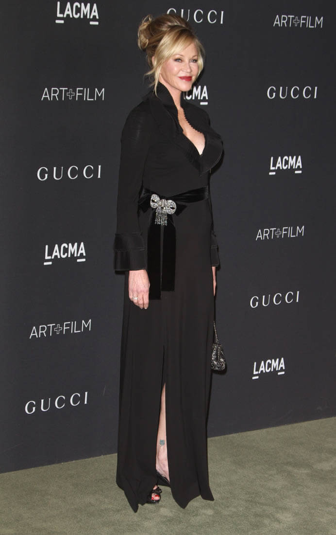 I find this neckline so flattering, with all that cleavage and then the collar cut high to frame the neck. And while I’m usually no fan of a belt, the placement of this one is perfect, with the tricked out bow pinned at the hip. The best black dress of the night.