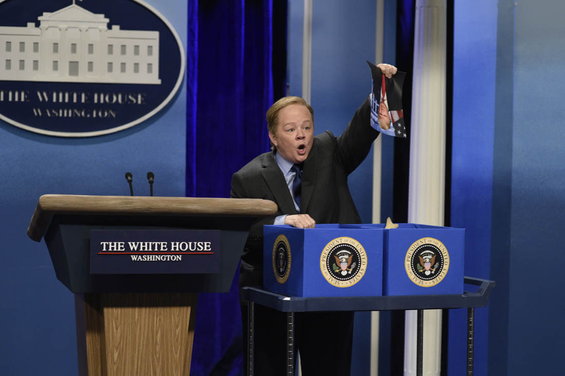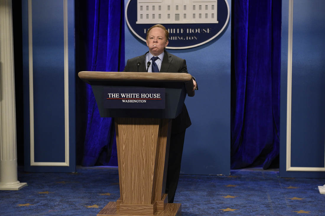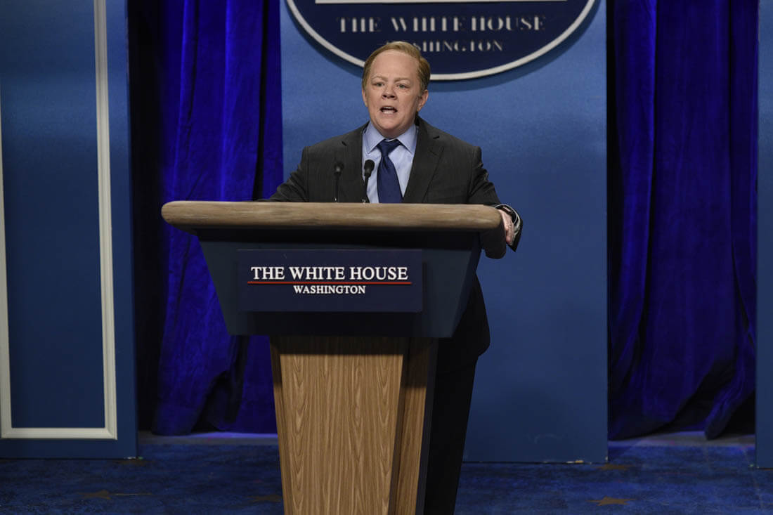 With Sean Spicer though, they have a more accessible target, and with McCarthy they have a tremendous performer of characters. Left to her own devices, McCarthy’s taste isn’t what we might want it to be (see also: Tammy, The Boss), but when performing material written by others, she’s an incredible sketch comedian. And that’s what she brings to lampooning Spicer. In real life, he seems completely overwhelmed and his press briefings are almost surreally hostile. That’s what SNL and McCarthy tap into, and McCarthy doesn’t break once in portraying him as a combative liar who can’t seem to believe that the media is even allowed to ask questions at all.