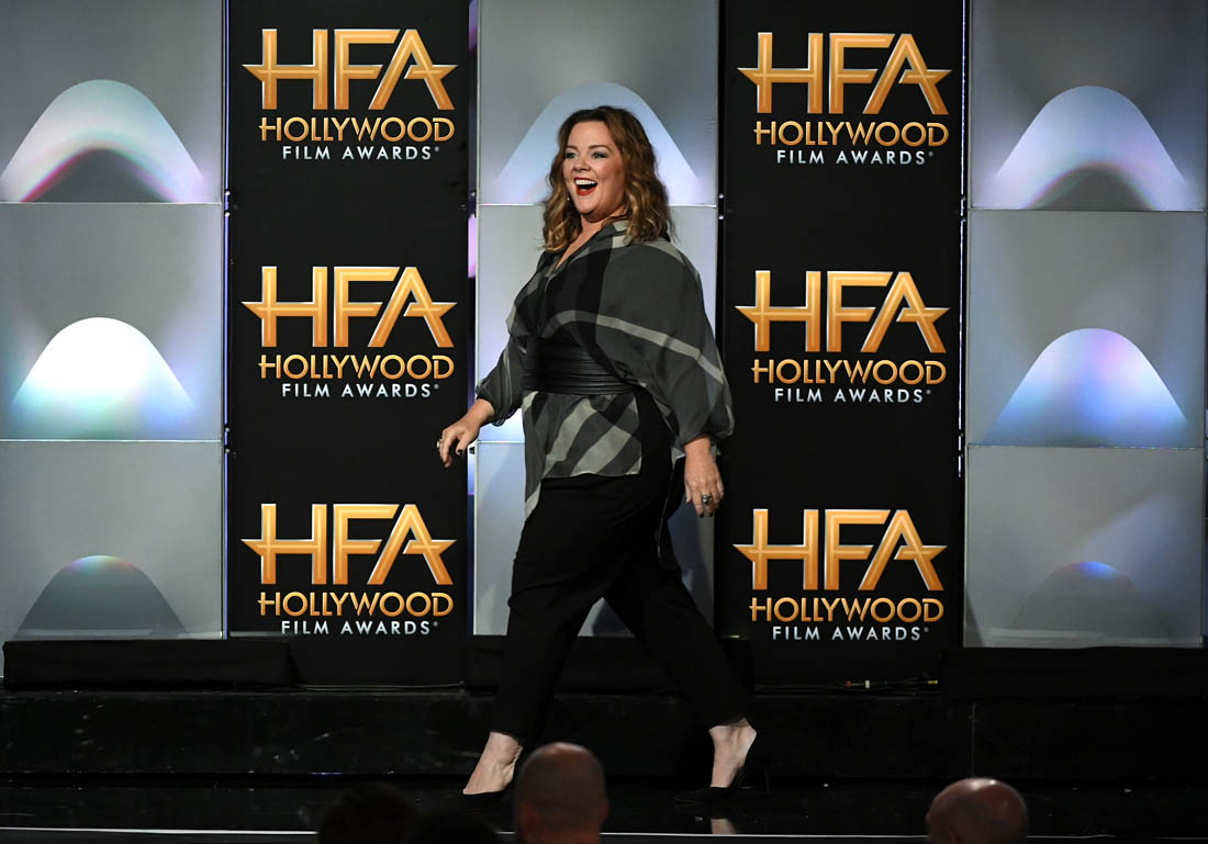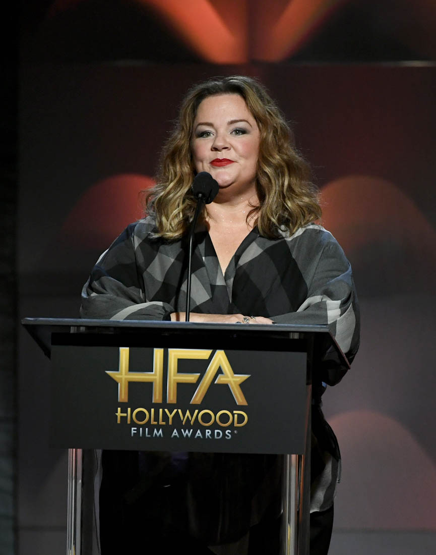 Here’s Melissa McCarthy in grey plaid over pants at the Hollywood Film Awards last night. And the leather belt gives the outfit its polish. Looks great on her and even though she was probably one of the most casually dressed of the night, it’s not an underdressed look either. I’m not usually a fan of a belt, personally (I never wear belts) but it’s definitely an accessory that can easily elevate a look without trying too hard.