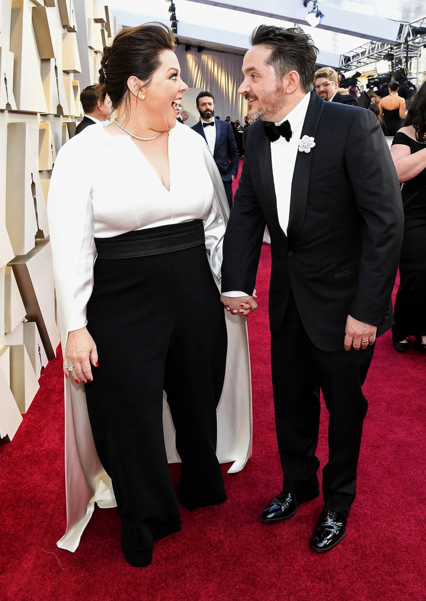 If you need further proof that she’s not sweating the way the night went down – and yes, I saw the word choice there and I’m tired so I’m going to let it look like a pun instead of an accident – at Vanity Fair, she and husband Ben Falcone, who always seems to be up for doing whatever Melissa’s doing and going wherever she’s going, showed up in matching Adidas track suits: