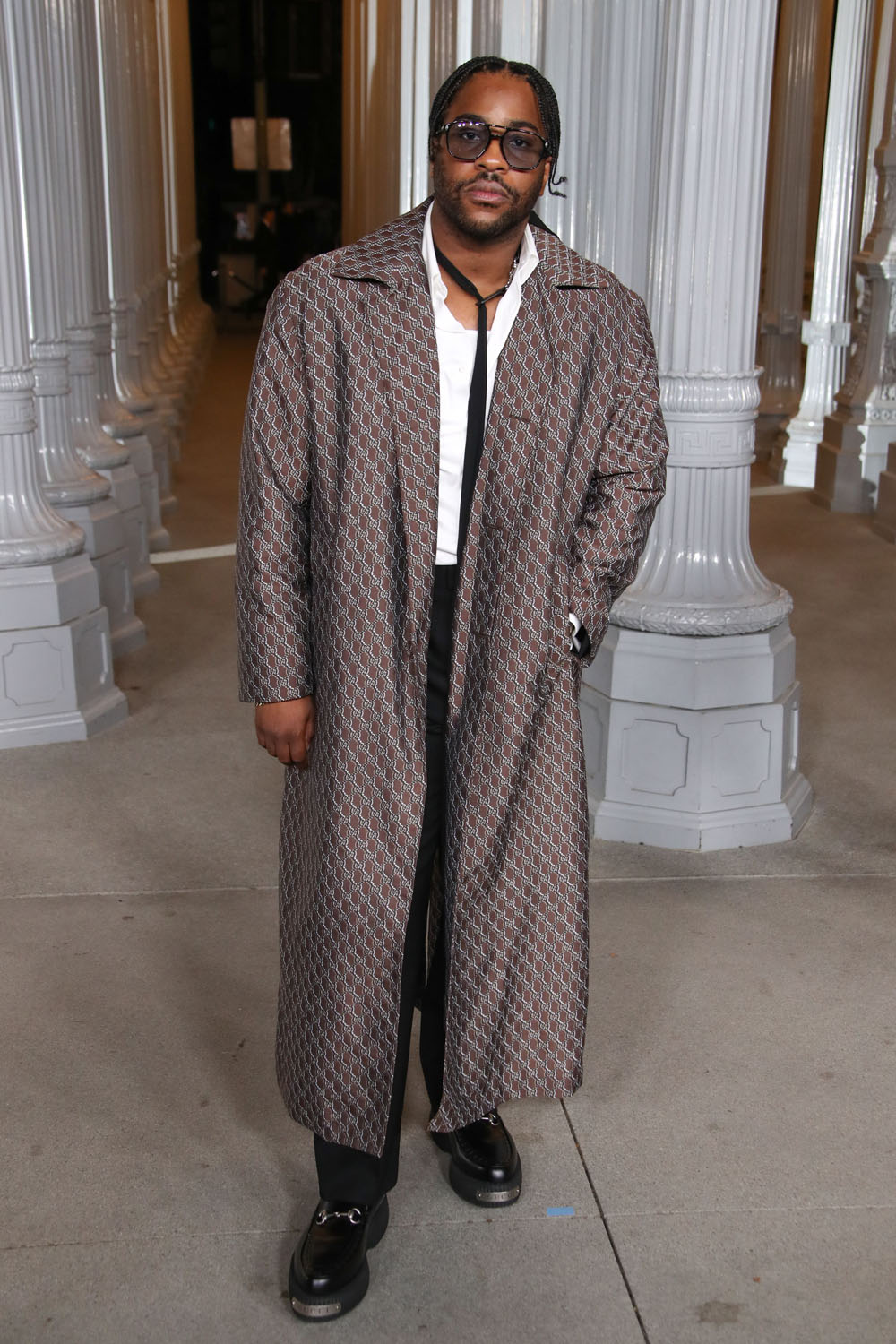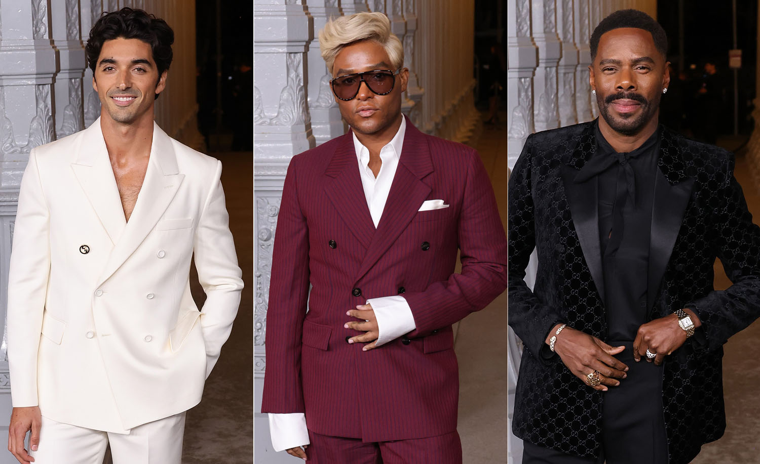 Another man who tried is Colman Domingo, in Gucci, though this is a lowkey look for him. He’s mainly getting points for wearing a neckerchief. Forget day to night, Colman is going from dinner to stylishly solving a murder mystery with his little neckerchief, doing Benoit Blanc proud. Closing out the men who tried with brothers John David and Malcolm Washington. John David wore a burgundy suit, and Malcolm sported a long Gucci coat. I hate the string thing, it looks so half-assed, but the coat is beautiful.