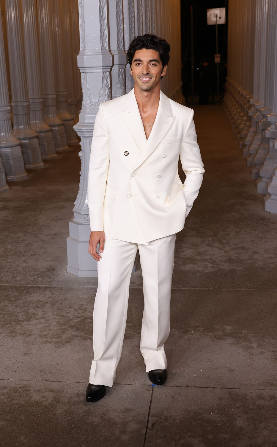Men also attended the LACMA Gala, and I have divided them into two camps: men who tried, and men who showed up. Let’s start with the men who tried, led by…Taylor Zakhar Perez, in a white suit, sans shirt. This is a VERY good look on him.