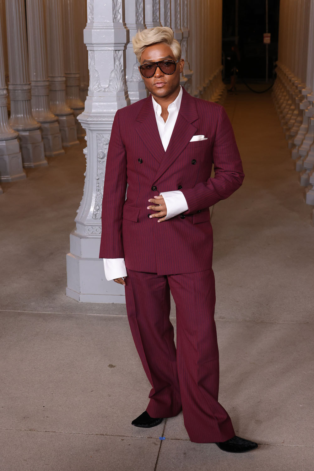 Next up is Law Roach in Ferragamo and a blonde Ken wig. He looks fantastic, but what is that color? Mulberry? The berry reds are all so close on the color wheel.