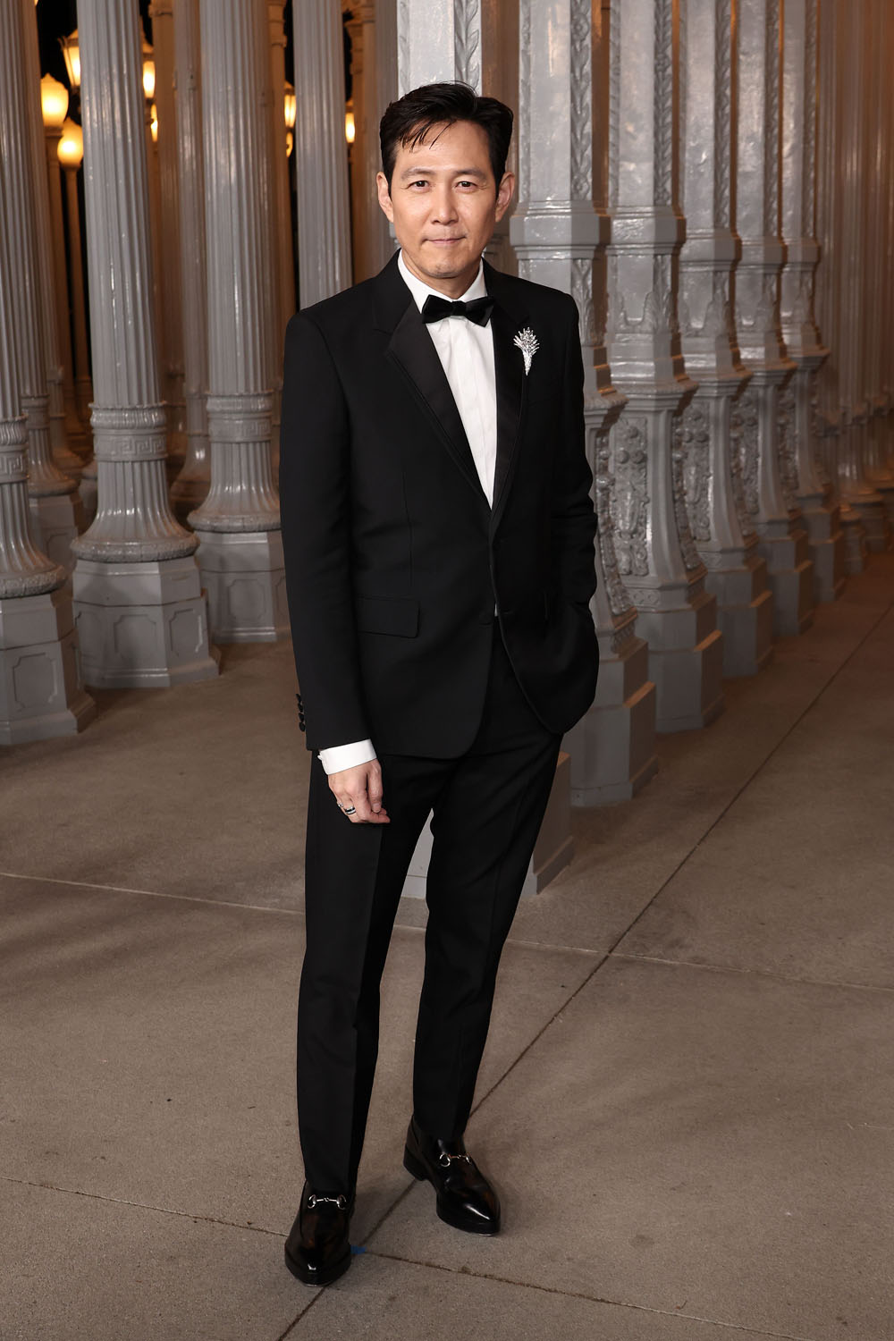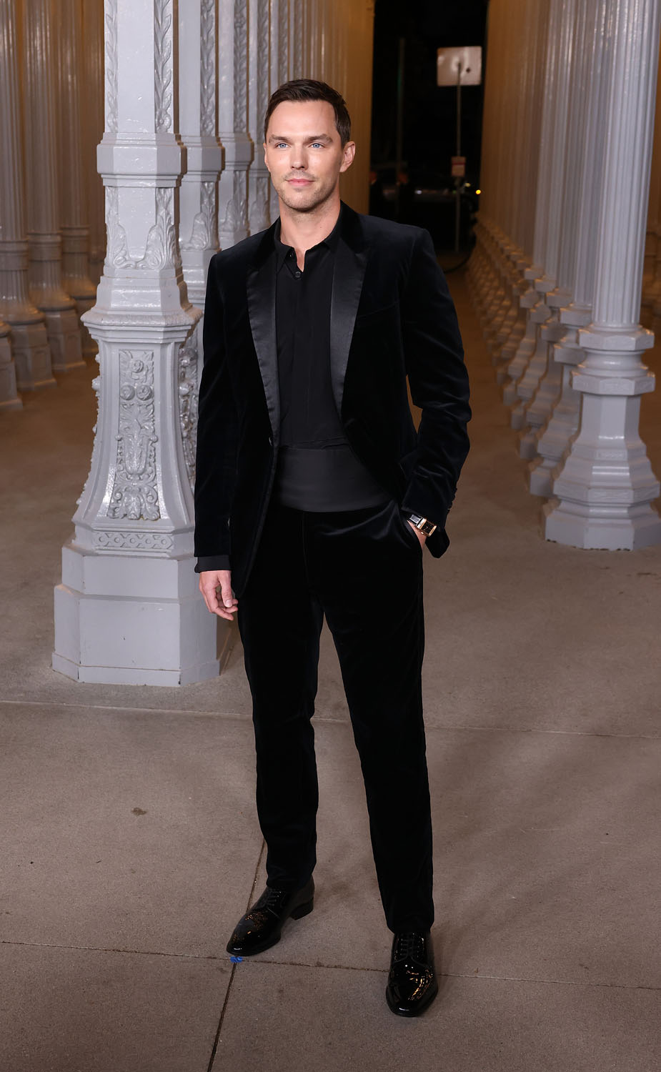 And now for the men who showed up, starting with Lee Jung-jae. He looks dapper, the brooch is a nice touch, but ultimately, this is just a tux. Ditto for Dev Patel, who looks handsome as hell, but again, just a tux (although someday we’ll look at all these photos of Dev Patel in tuxes and wonder why he’s not playing James Bond). Finally, we’ll end with Nicholas Hoult, who opted for all black and a cummerbund, but no tie (speaking of Bond, wouldn’t it be a scream if he came out of nowhere to nab the double-oh from presumptive heir Aaron Taylor-Johnson?). The menswear game has stepped up in recent years—thanks in no small part to fashion monsters like Colman Domingo—and the days of getting bonus points for wearing all black are over. These men all look great because they’re all very handsome, but they’re not pushing the envelope, they just showed up.
