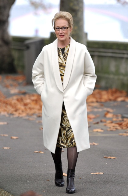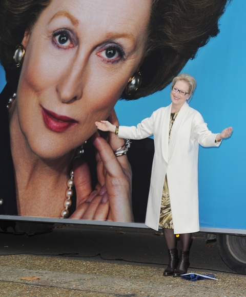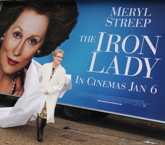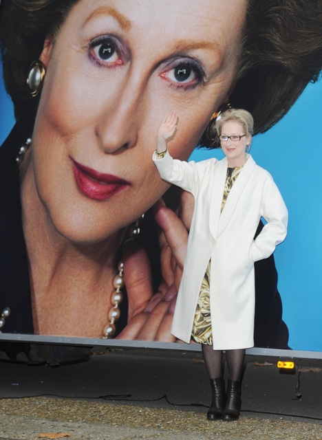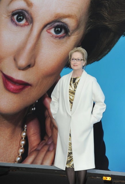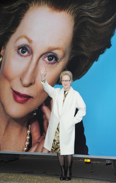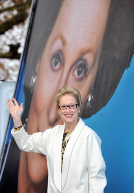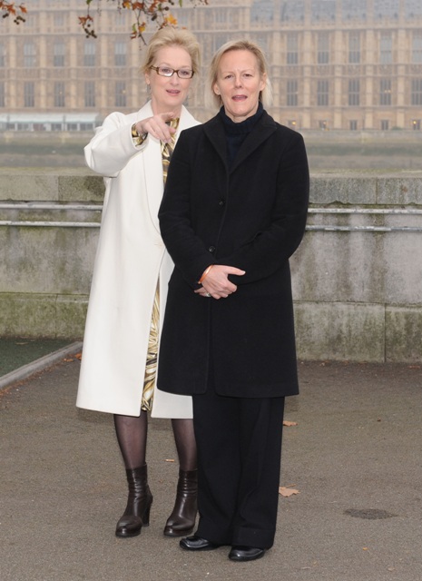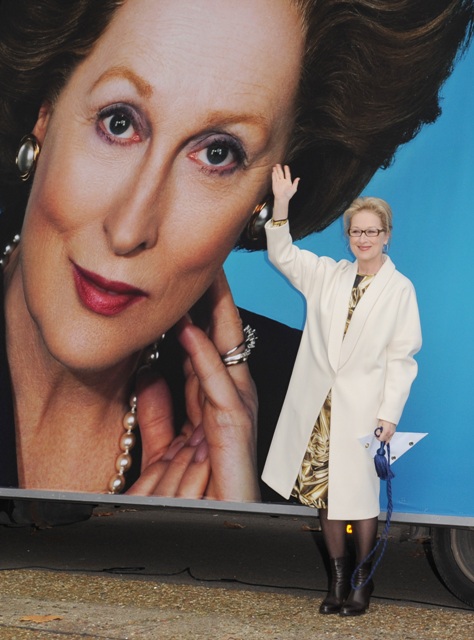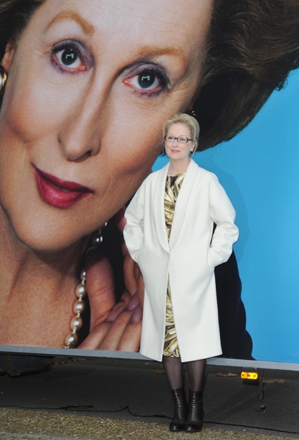 Meryl Streep was in London today for the unveiling of the poster for The Iron Lady with the film’s director Phyllida Lloyd. Streep’s portrayal of Margaret Thatcher is expected to earn her yet another Oscar Best Actress nomination.