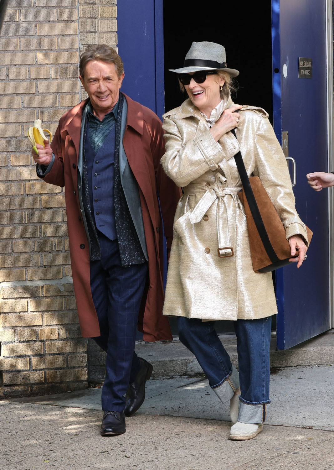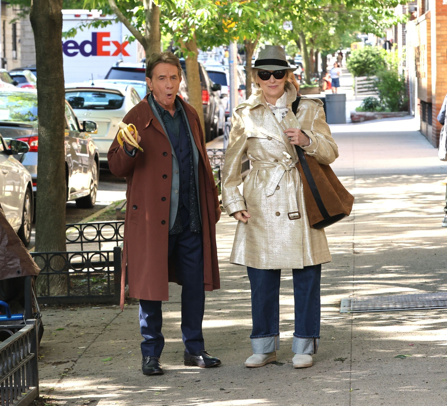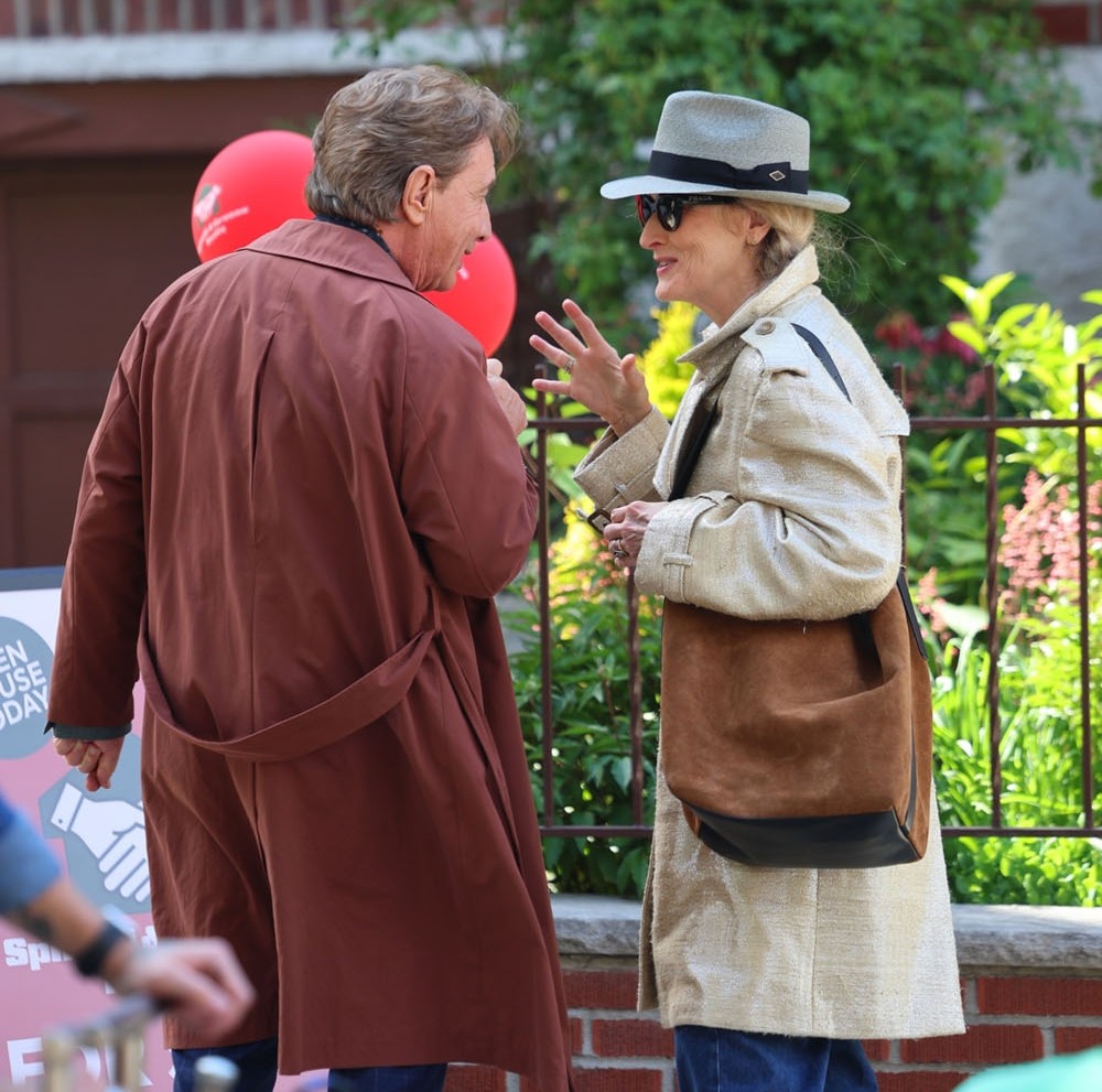 Meryl Streep and Martin Short were shooting scenes for Only Murders in the Building season five today in New York. You wouldn’t really know, though, if the cameras weren’t there, right? Because, of course, they hang out off camera too. They hang out often off camera.