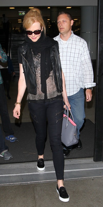 Here’s Nicole arriving at LAX yesterday in a great outfit.